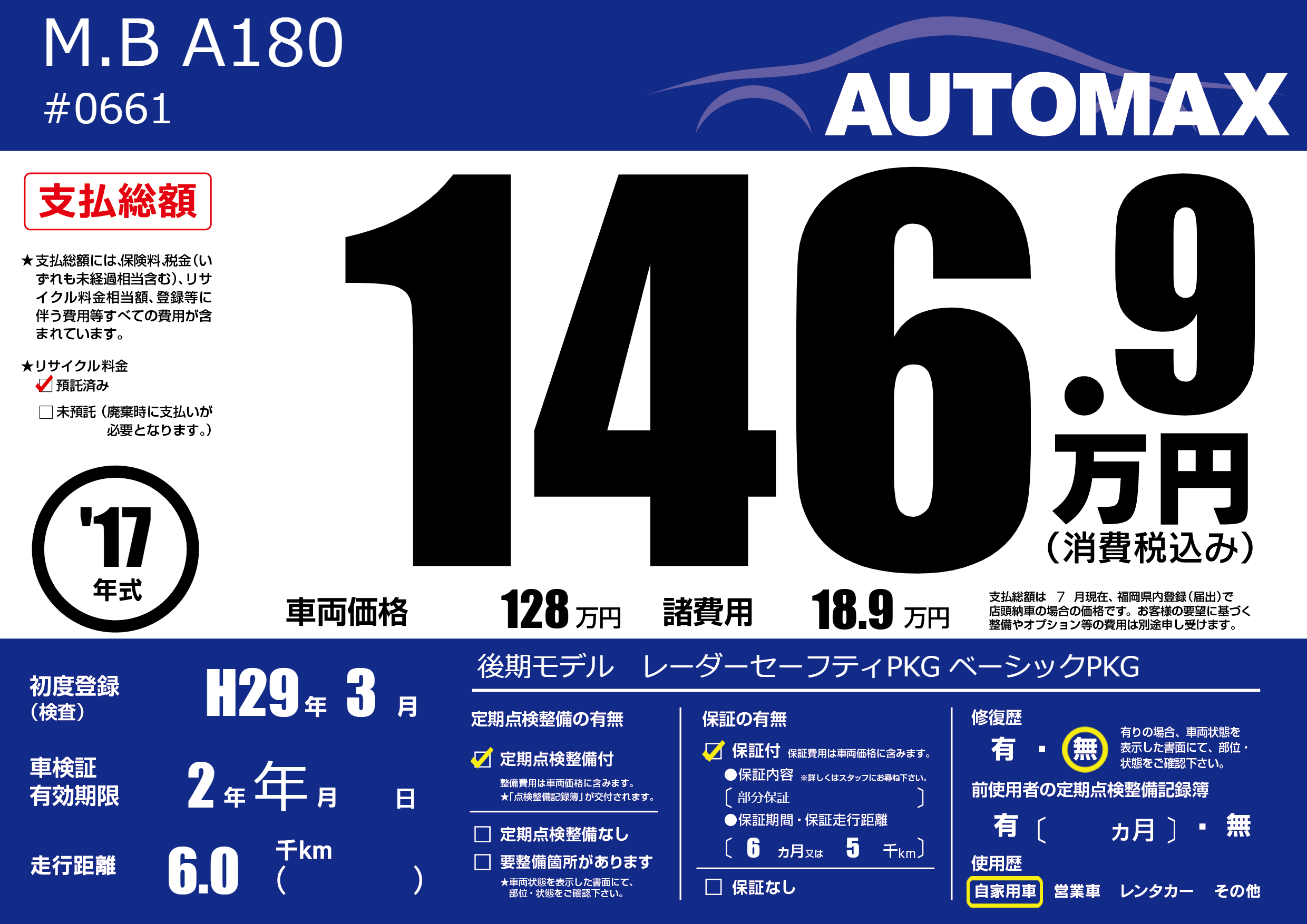 保証付き 保証内容(部分保証) 6ヶ月または(5)千kmまで |