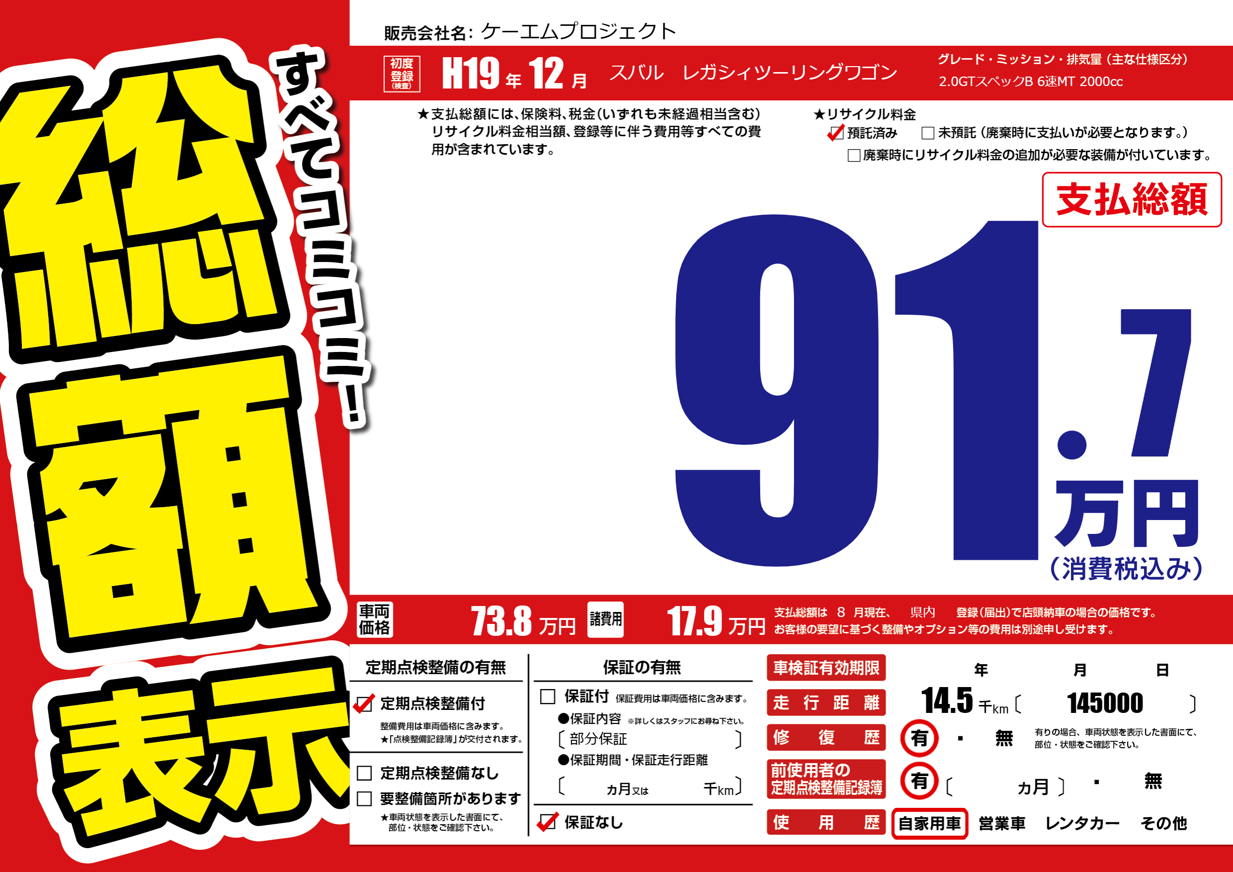 | 定期点検整備 | 定期点検整備あり | ||