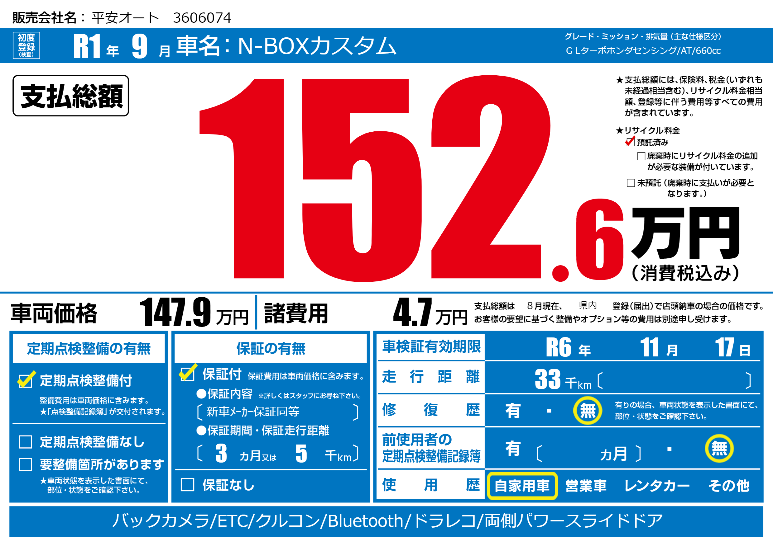 | 車名 | N-BOXカスタム | グレード ミッション 排気量 |