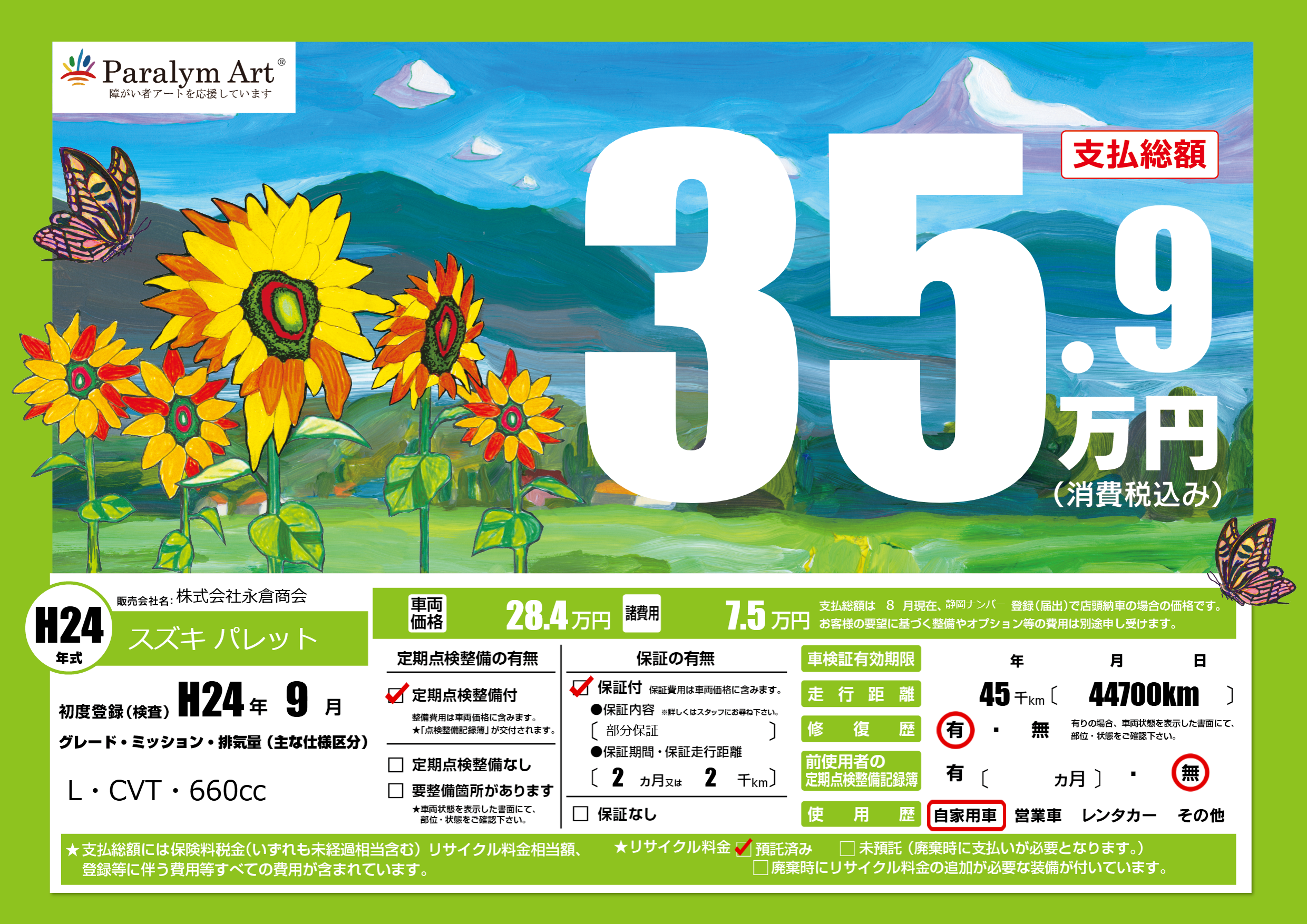 | 車名 | スズキ パレット | グレード ミッション 排気量 |