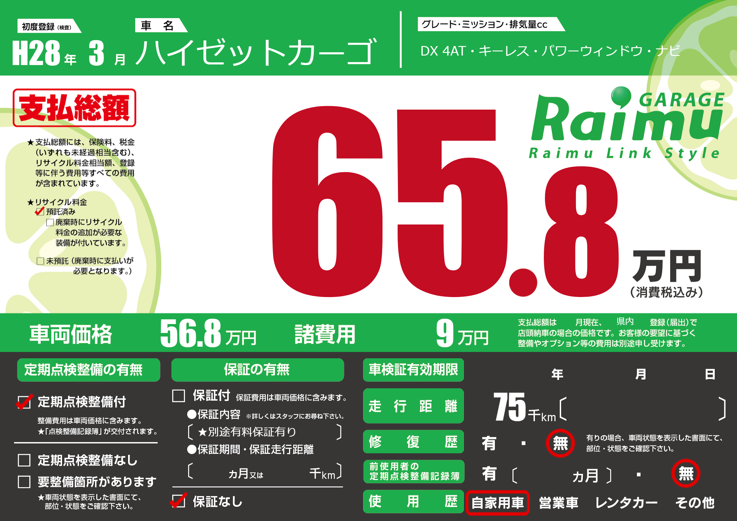保証なし 保証内容(★別途有料保証有り) ---ヶ月または()千kmまで |