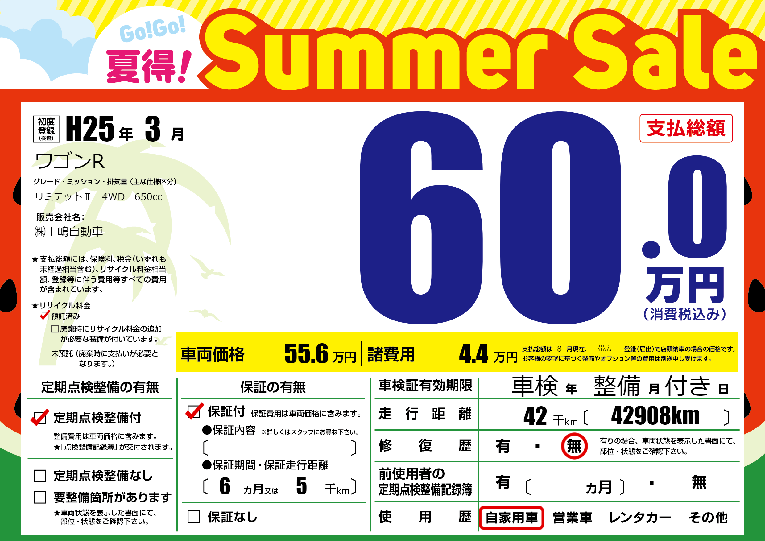 保証付き 保証内容(---) 6ヶ月または(5)千kmまで |