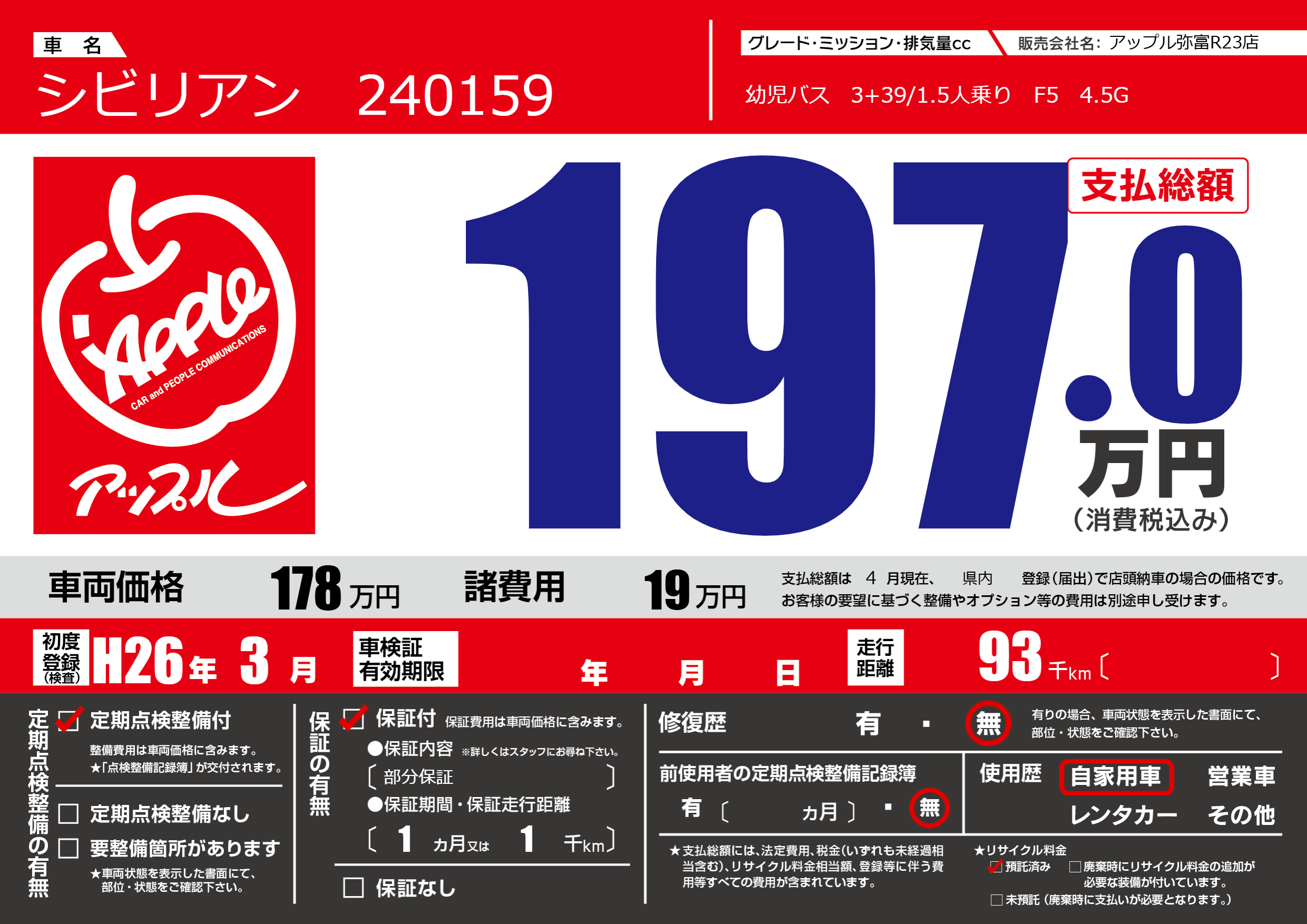 | 車名 | シビリアン 240159 | グレード ミッション 排気量 |