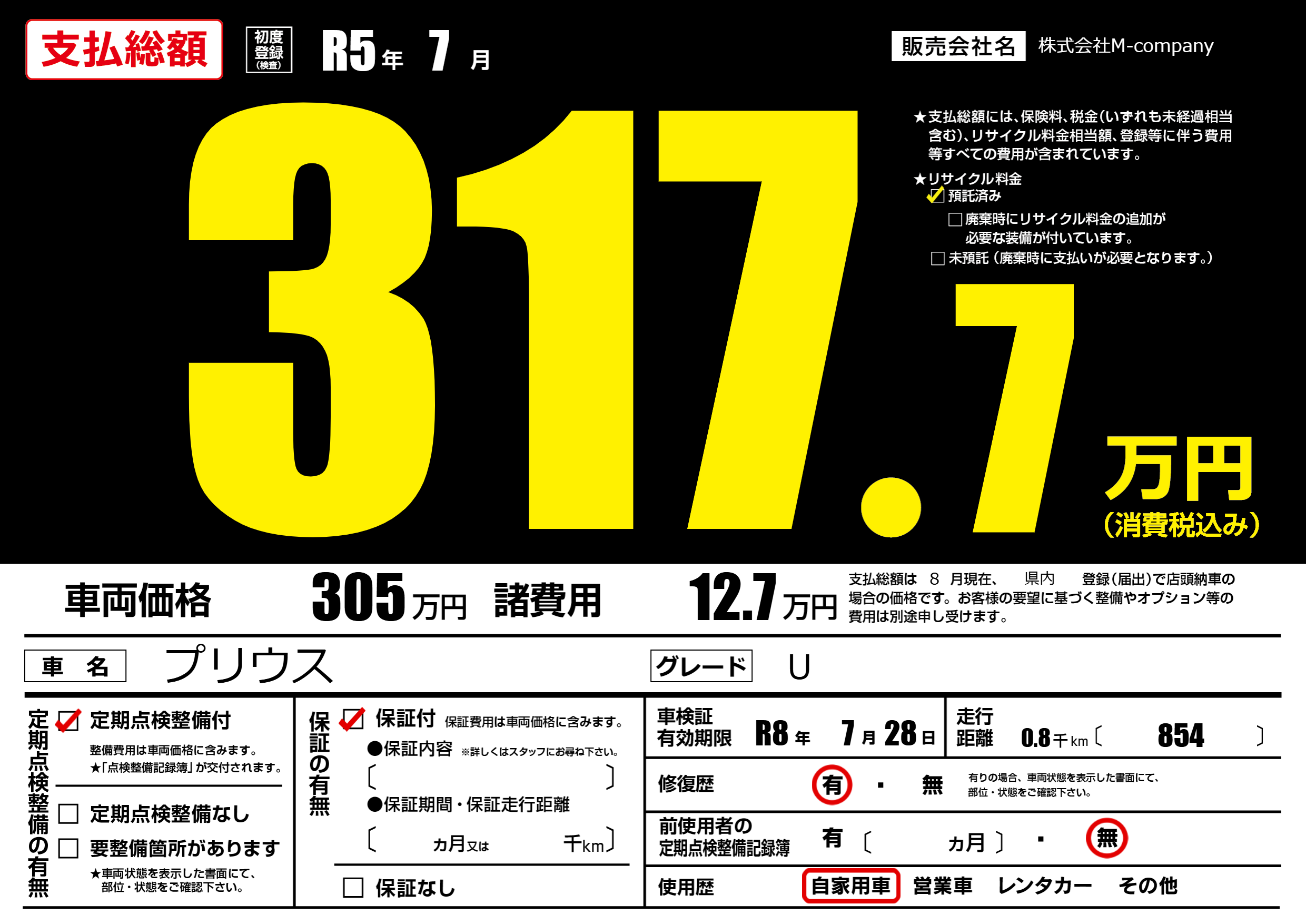 なし | 車検制限 | R8年7月28月 |
