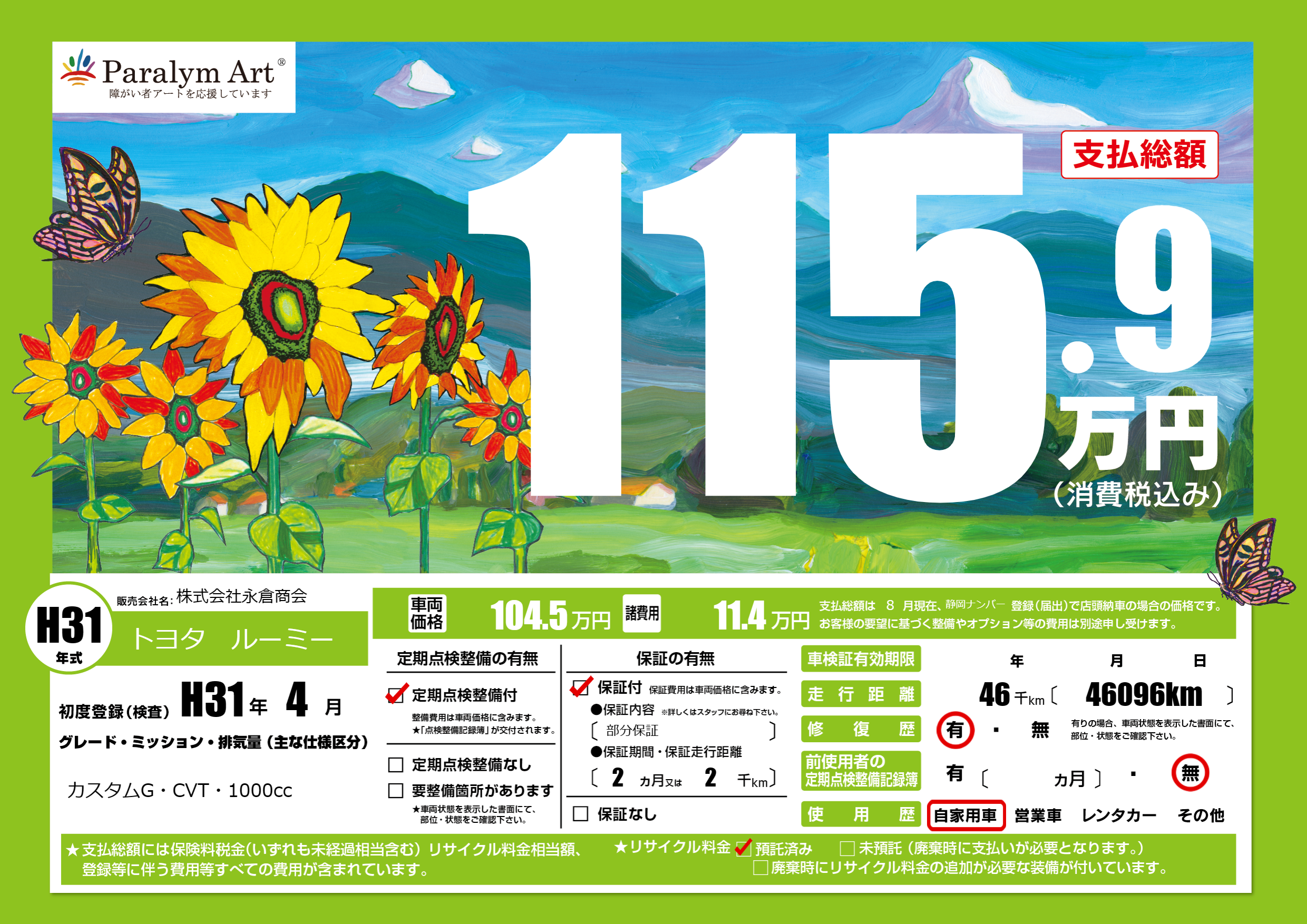 | 車名 | トヨタ ルーミー | グレード ミッション 排気量 |