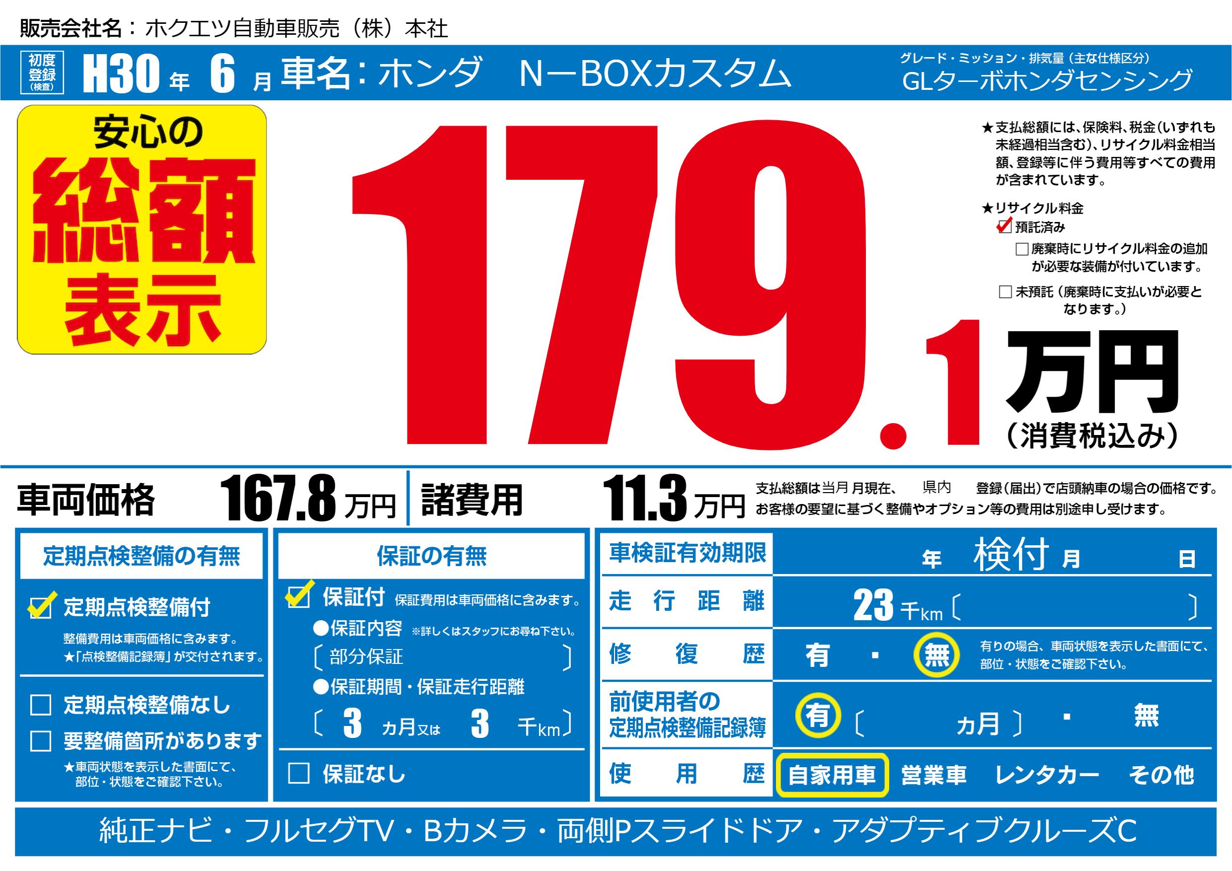 | 走行キロ | 2.3万km | 初年度登録 | H30年6月 |