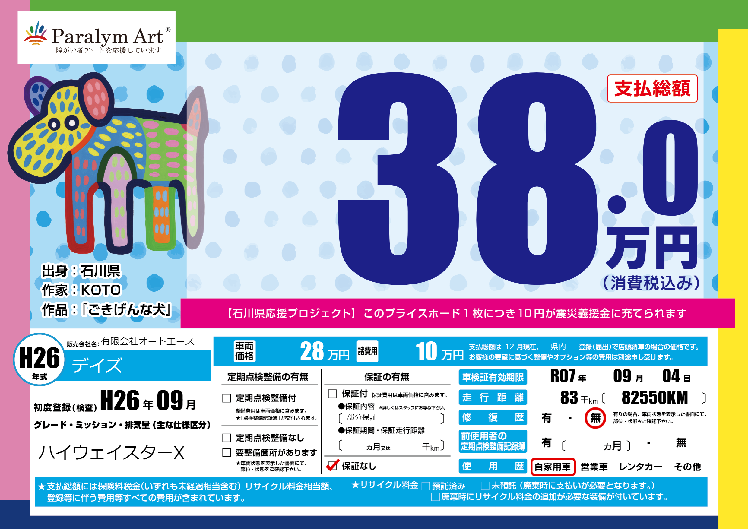 | 走行キロ | 8.3万km | 初年度登録 | H26年09月 |