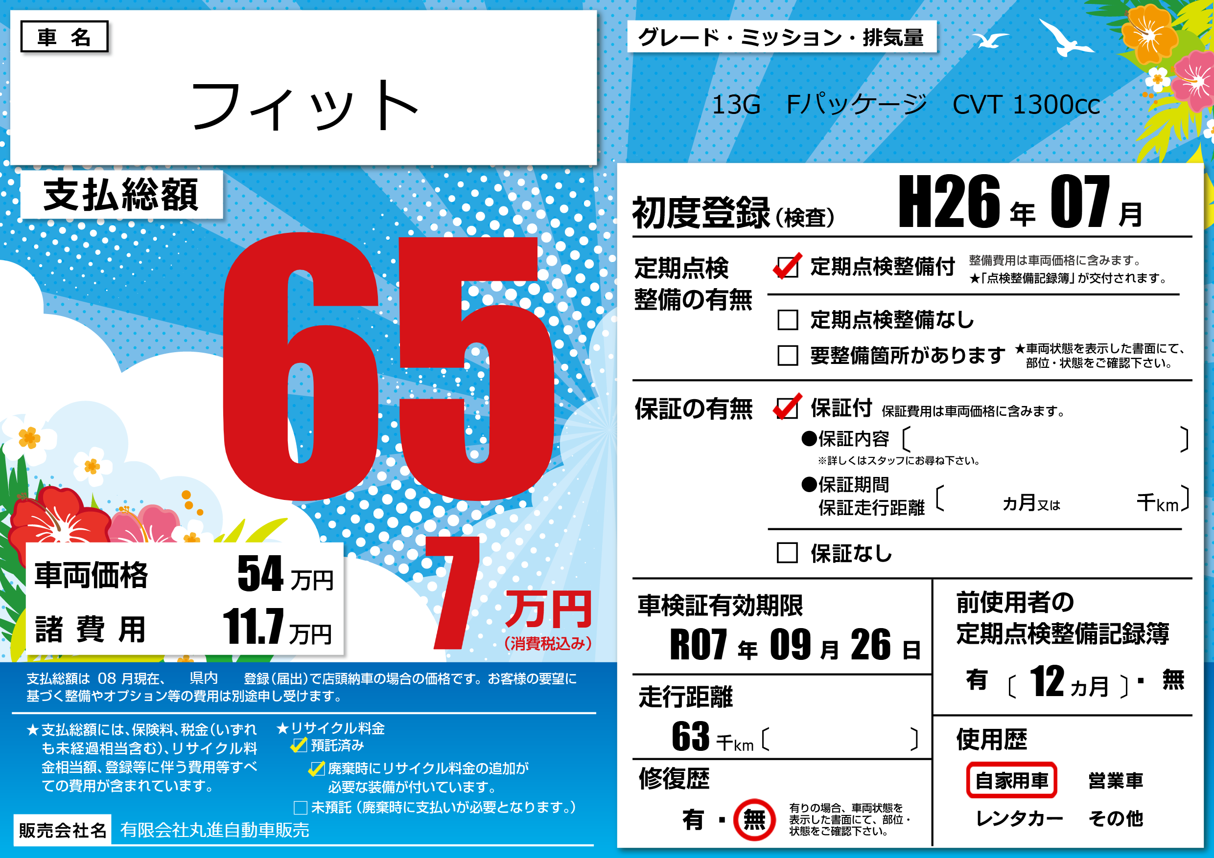 | 走行キロ | 6.3万km | 初年度登録 | H26年07月 |