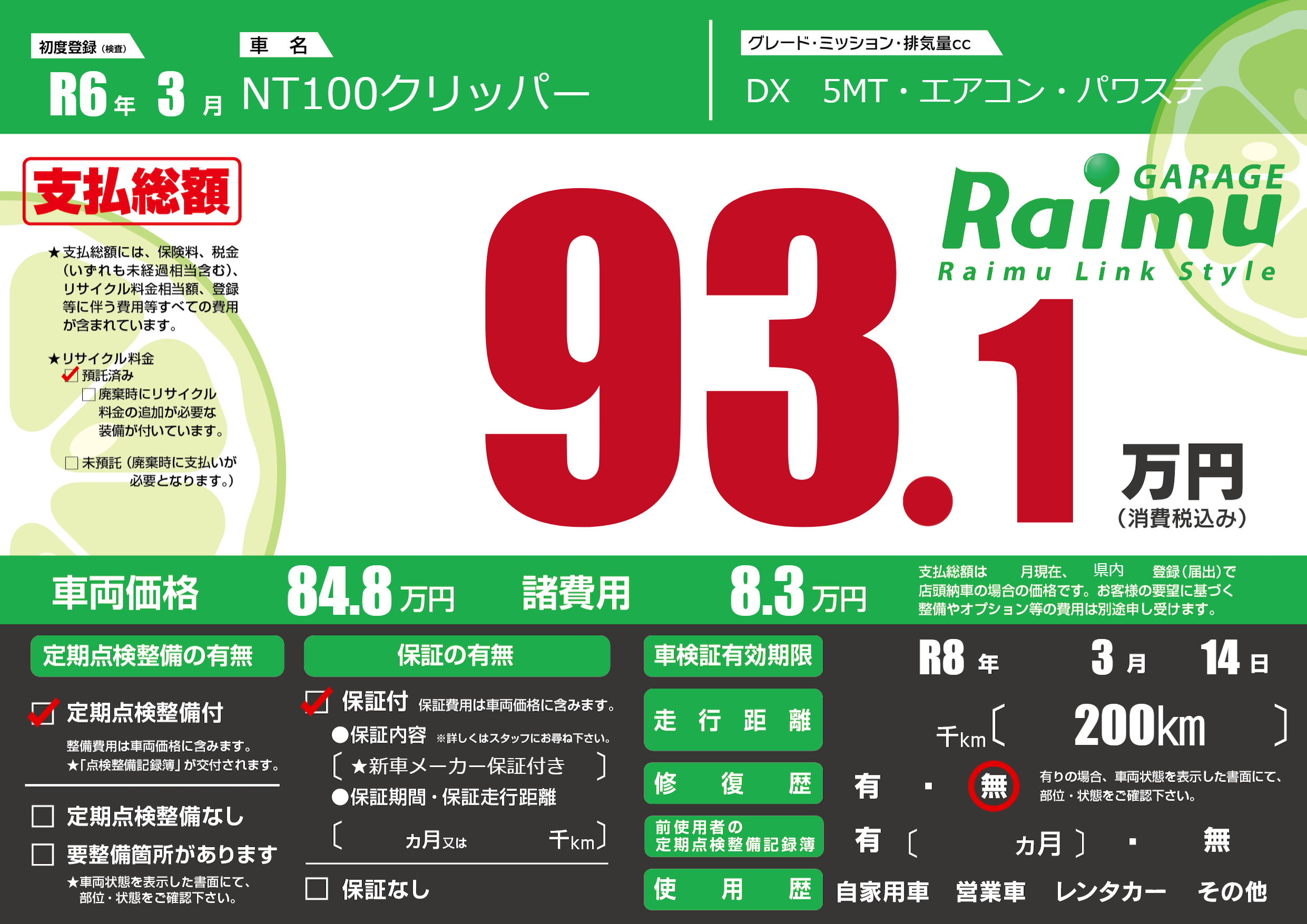 なし | 車検制限 | R8年3月14月 |