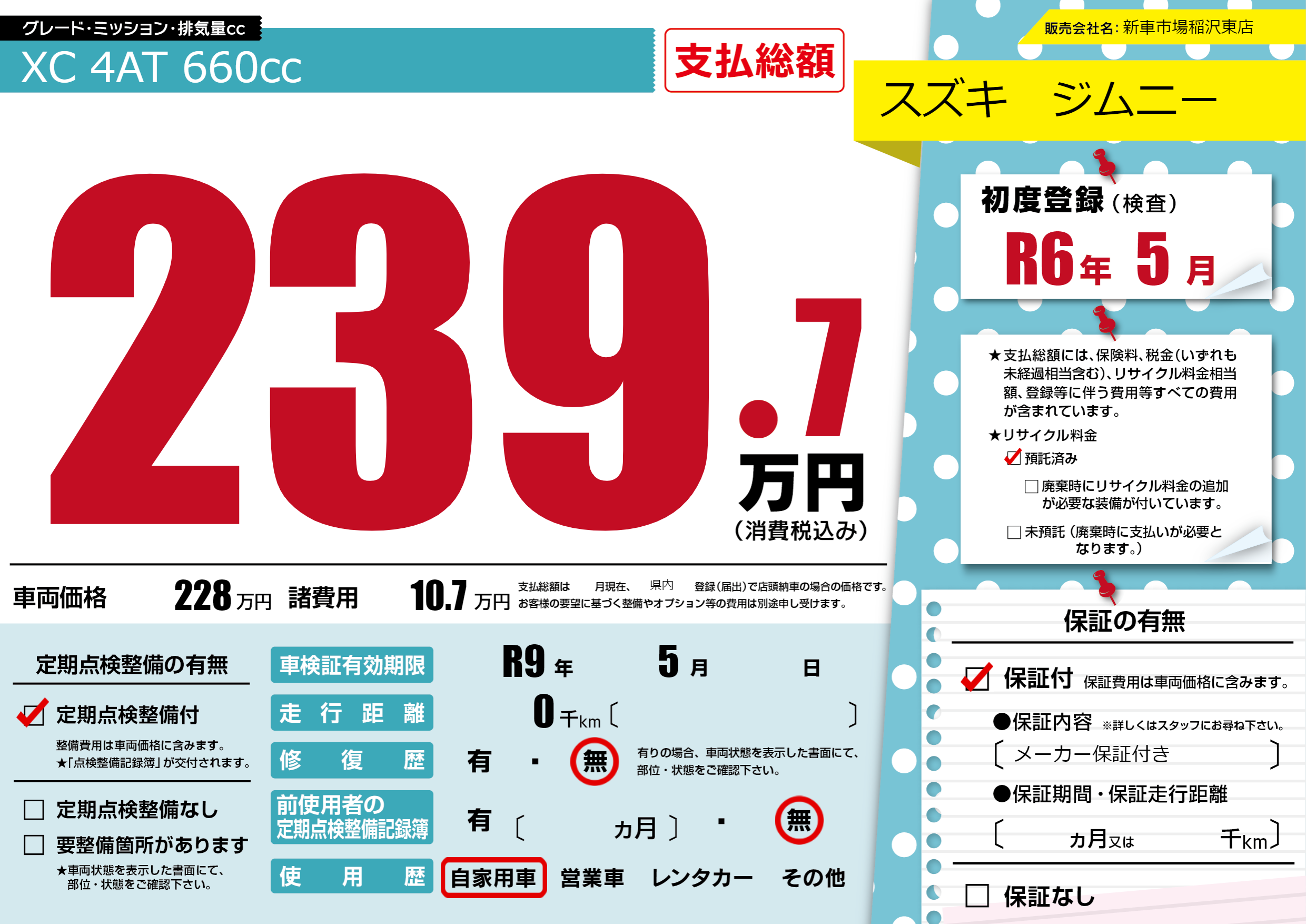 なし | 車検制限 | R9年5月---月 |