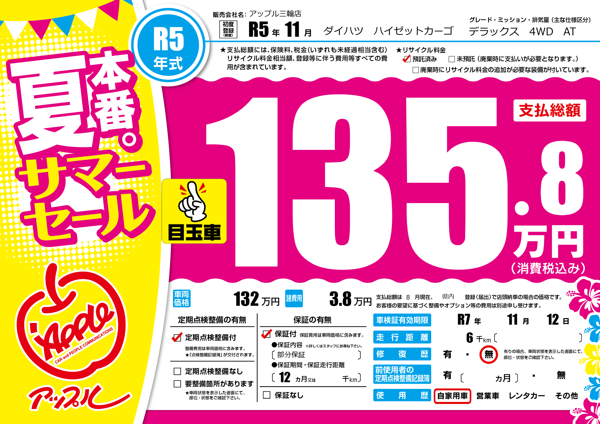 なし | 車検制限 | R7年11月12月 |