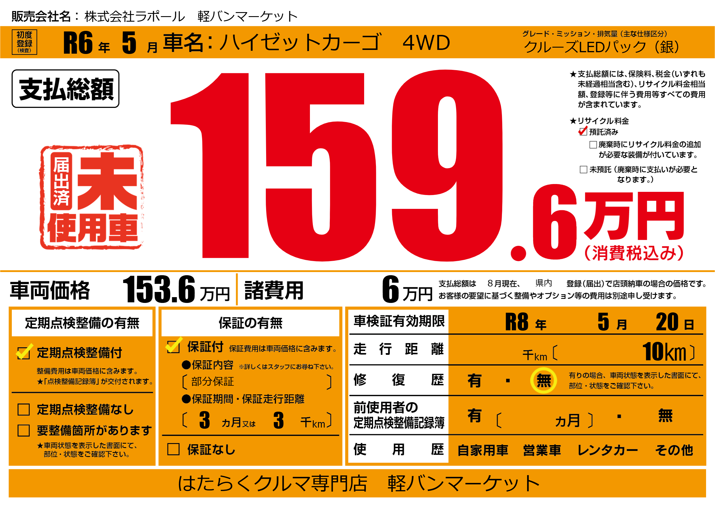なし | 車検制限 | R8年5月20月 |