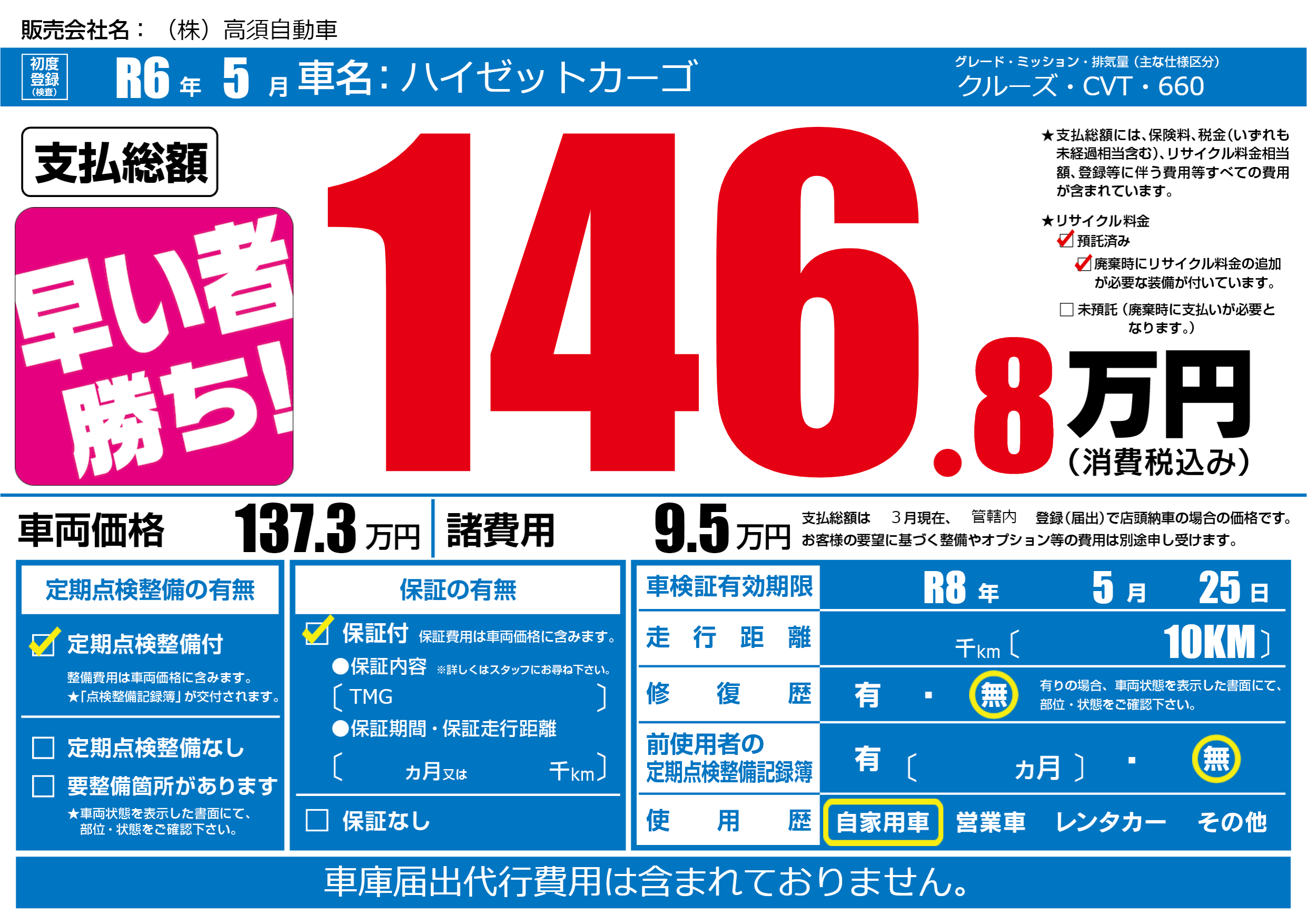 | 走行キロ | - | 初年度登録 | R6年5月 |
