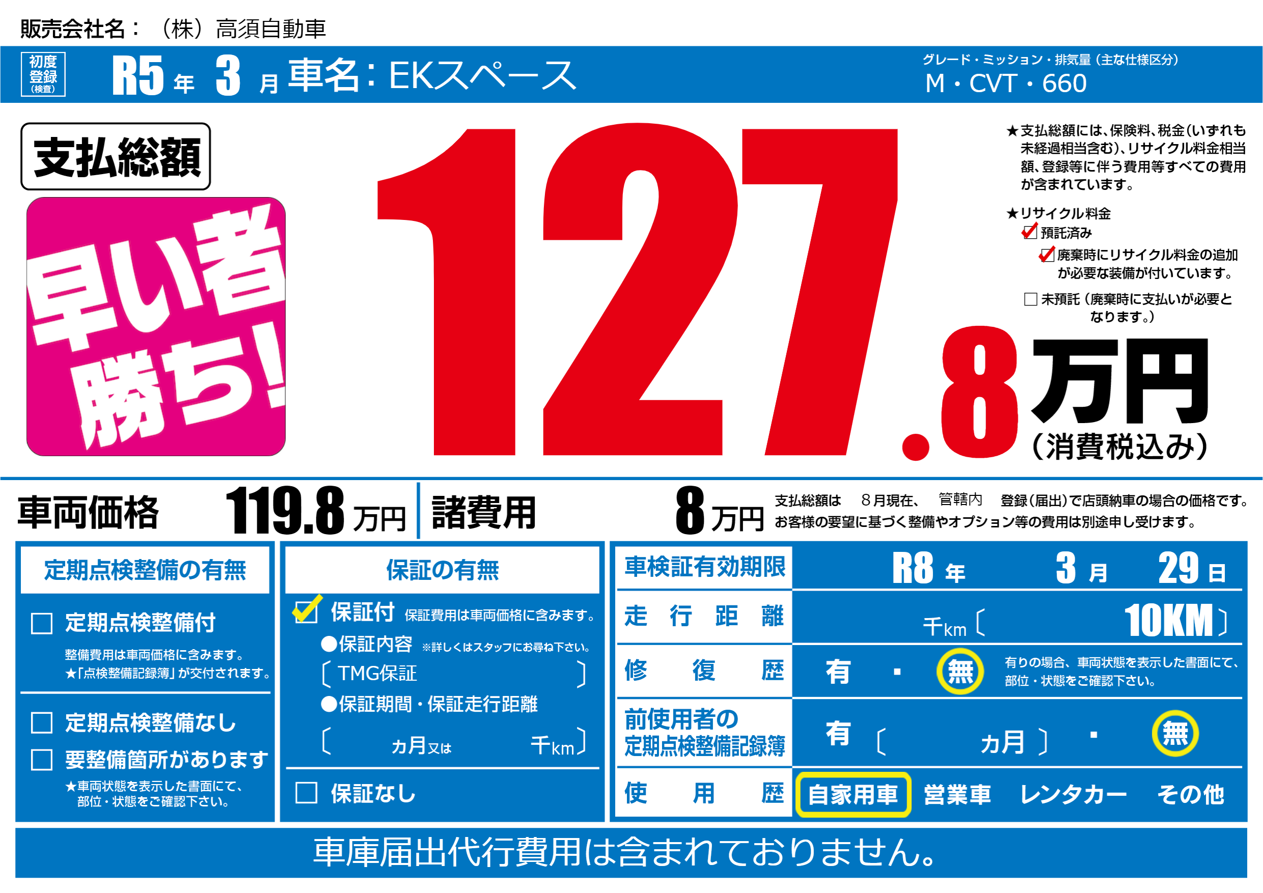 | 走行キロ | - | 初年度登録 | R5年3月 |