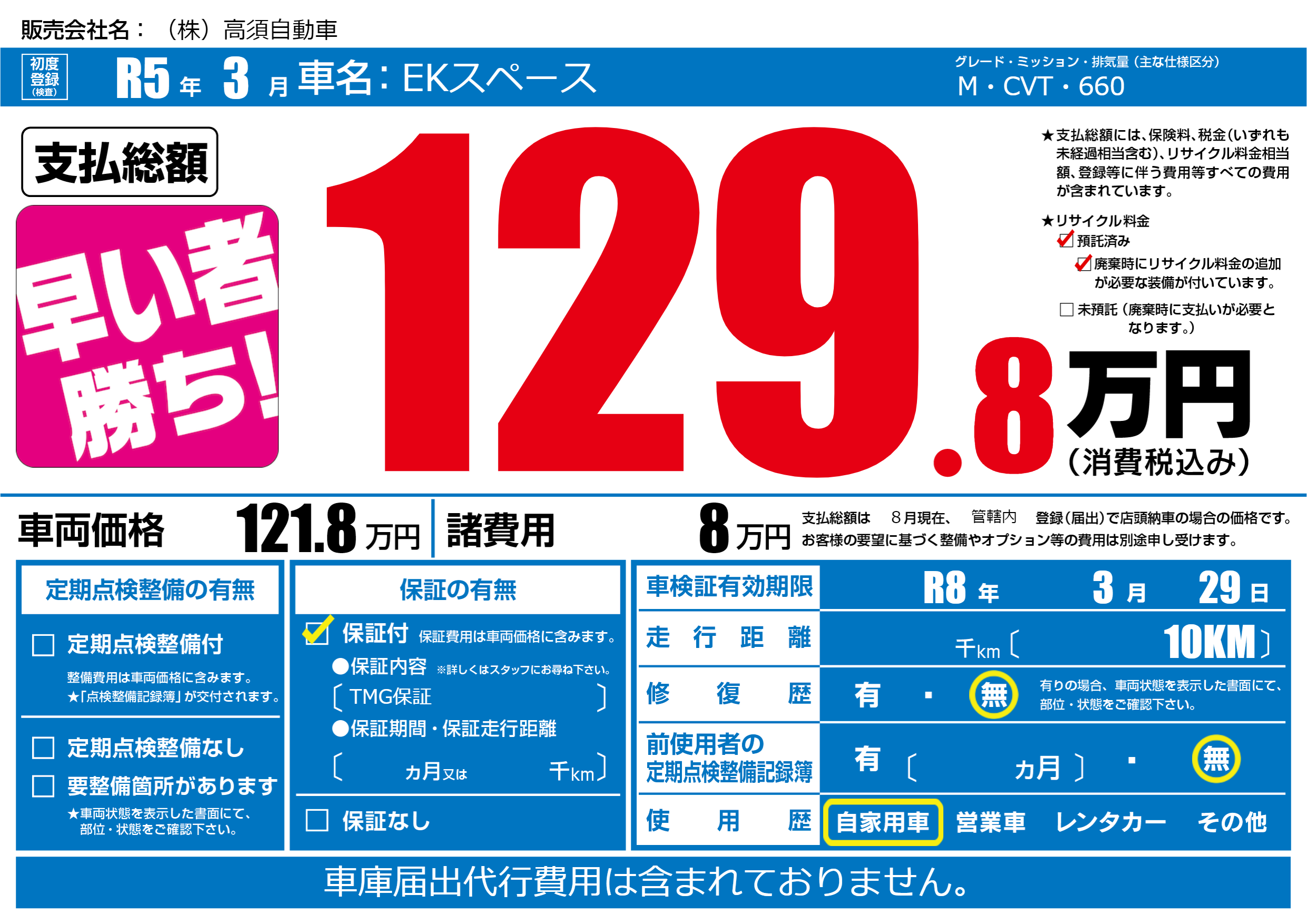 | 車名 | EKスペース | グレード ミッション 排気量 |