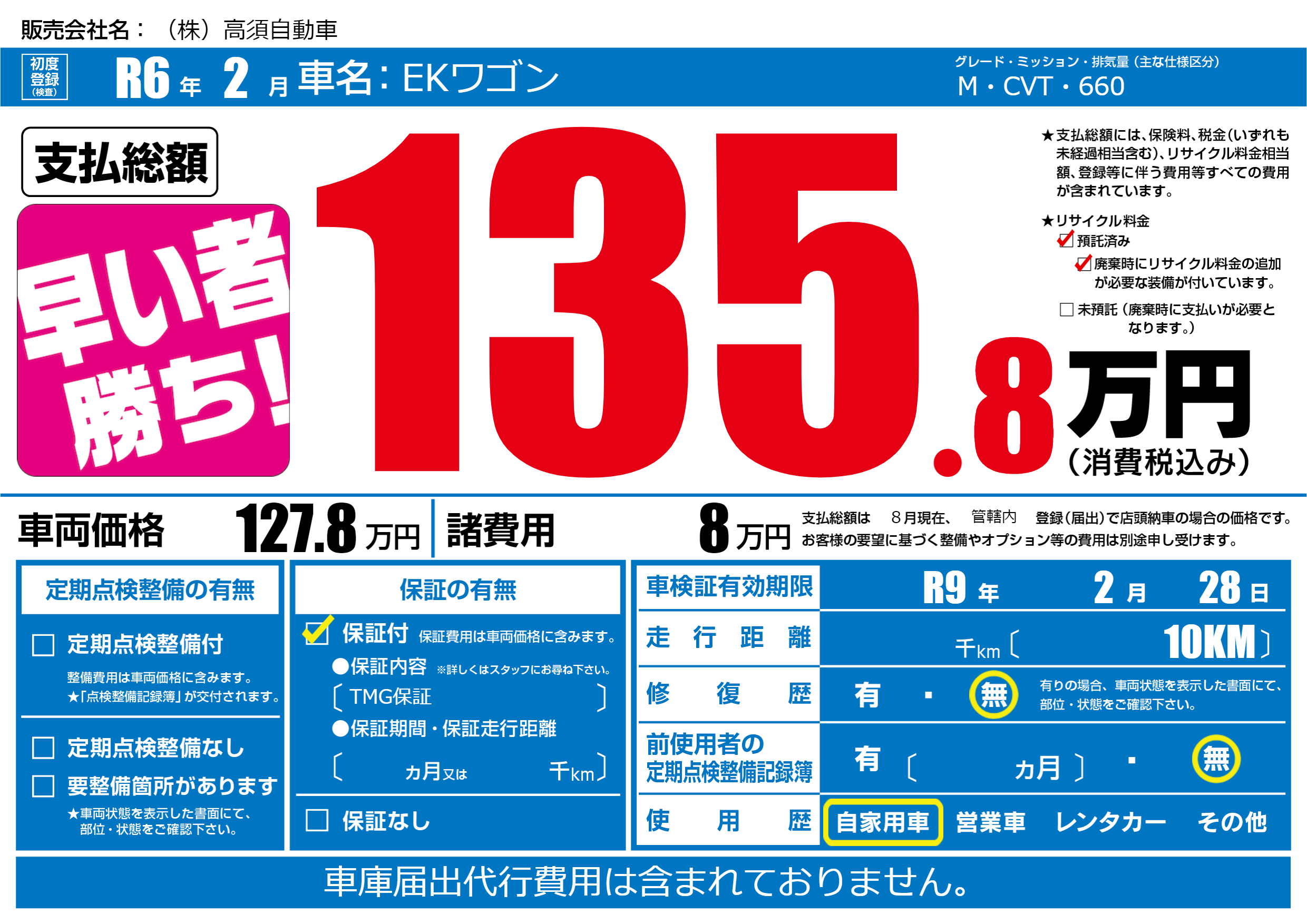 なし | 車検制限 | R9年2月28月 |
