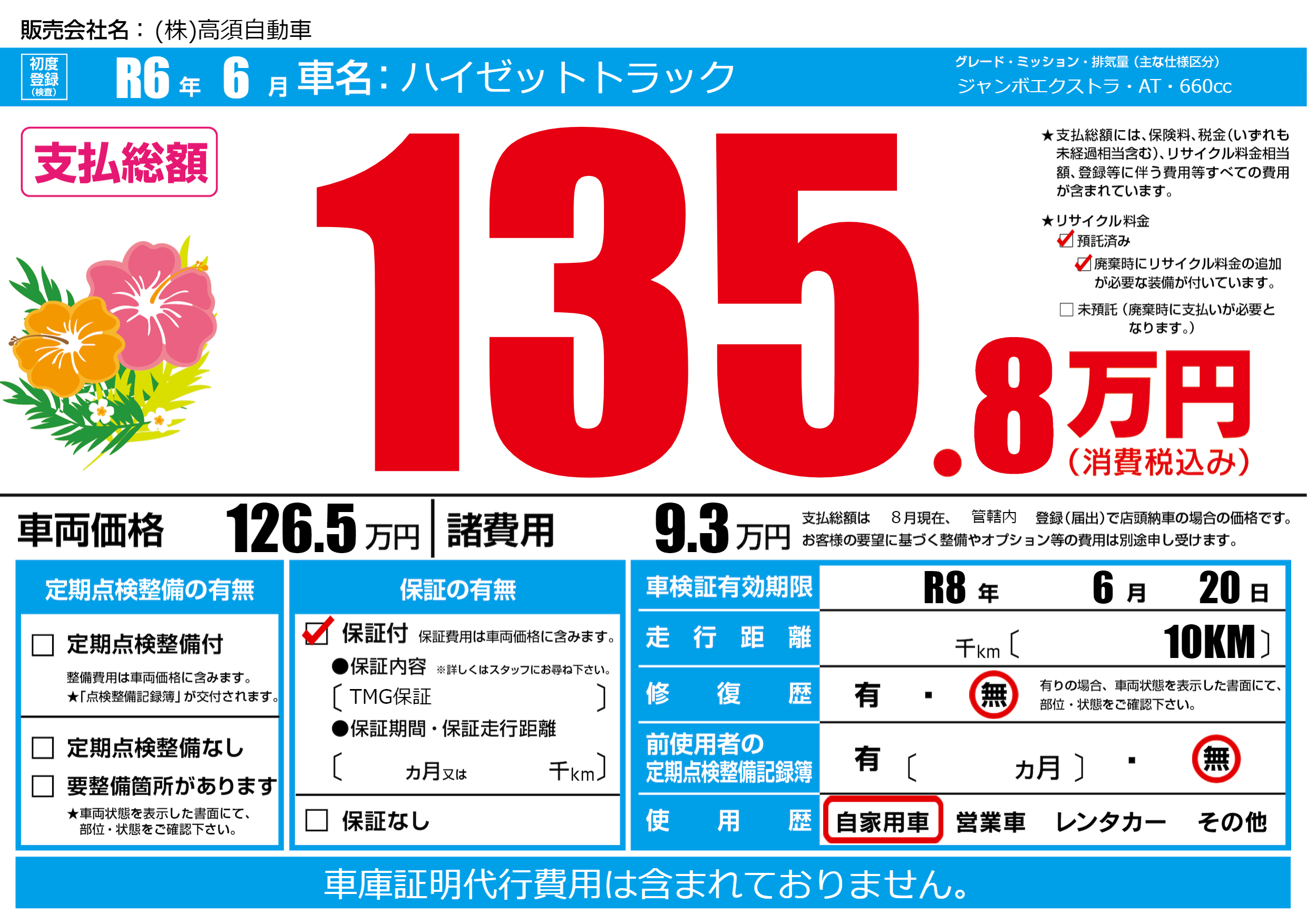 なし | 車検制限 | R8年6月20月 |