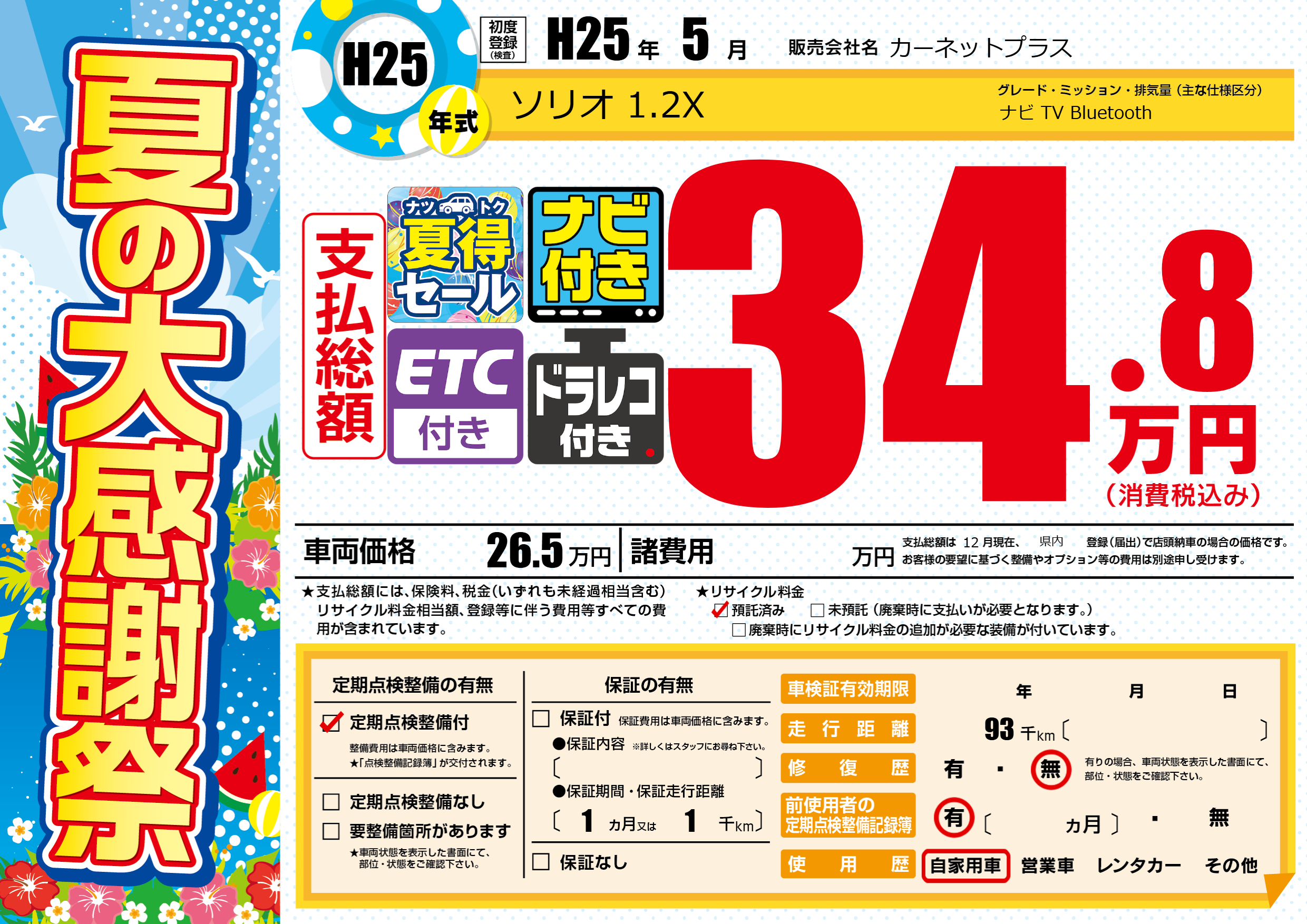 | 走行キロ | 9.3万km | 初年度登録 | H25年5月 |