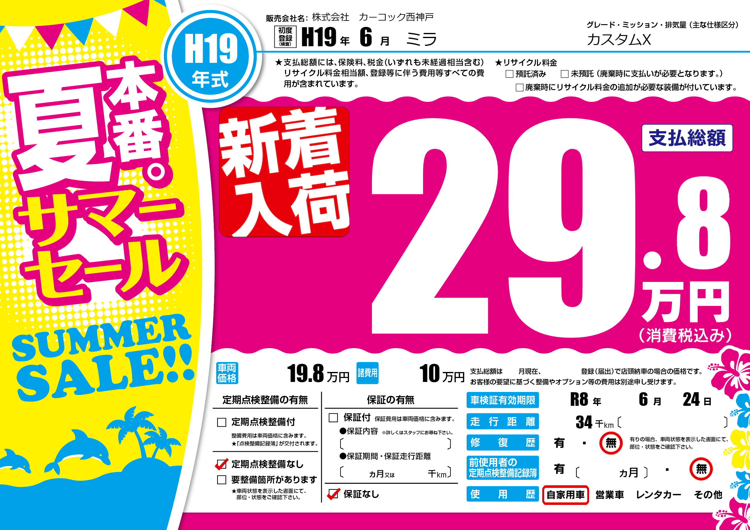 | 走行キロ | 3.4万km | 初年度登録 | H19年6月 |