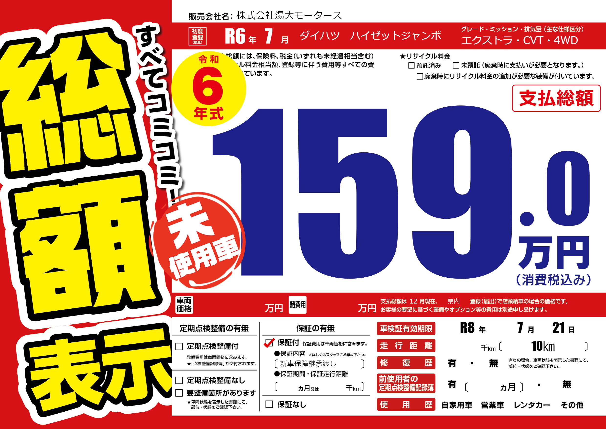 | 走行キロ | - | 初年度登録 | R6年7月 |