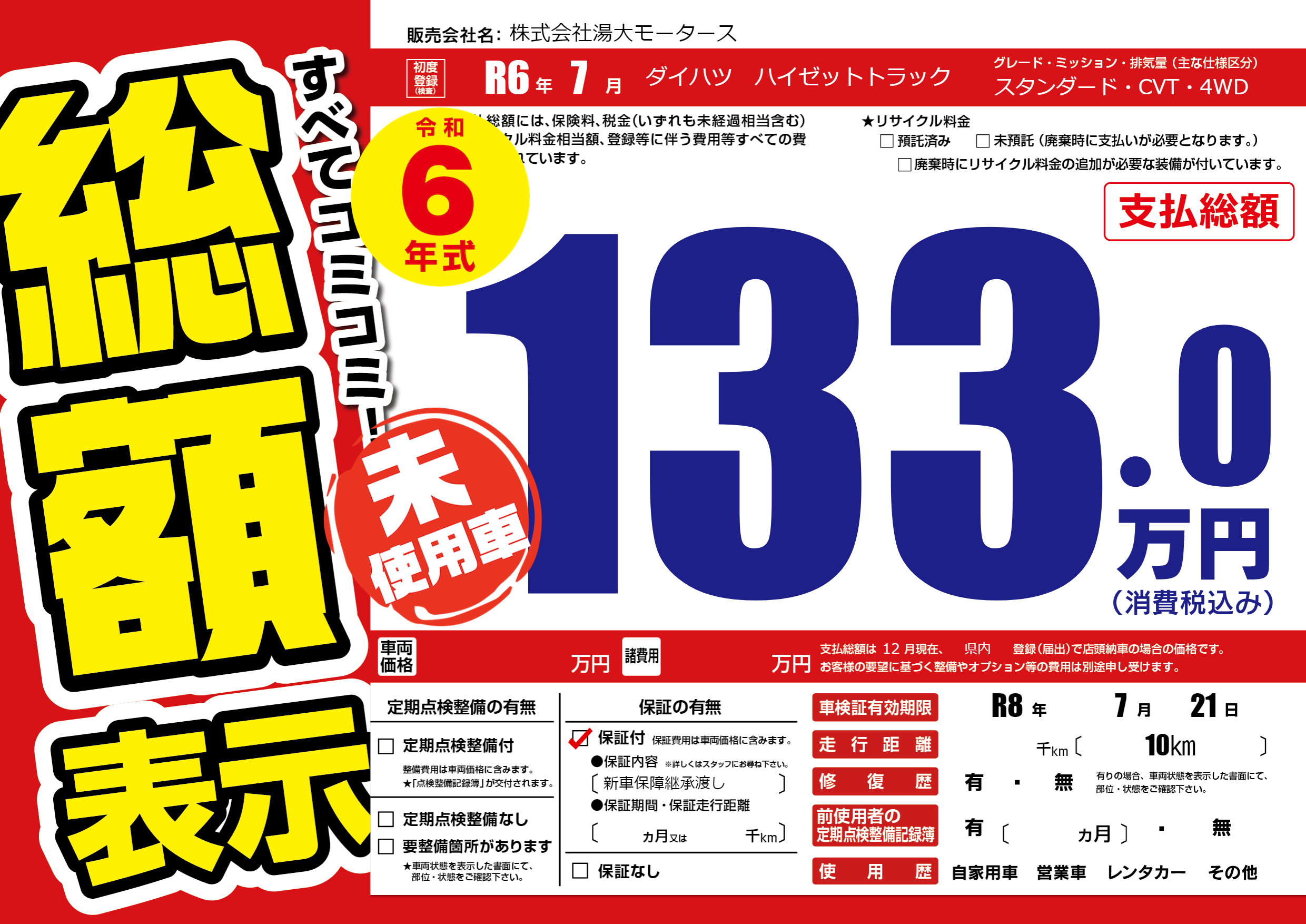 保証付き 保証内容(新車保障継承渡し) ヶ月または千km |