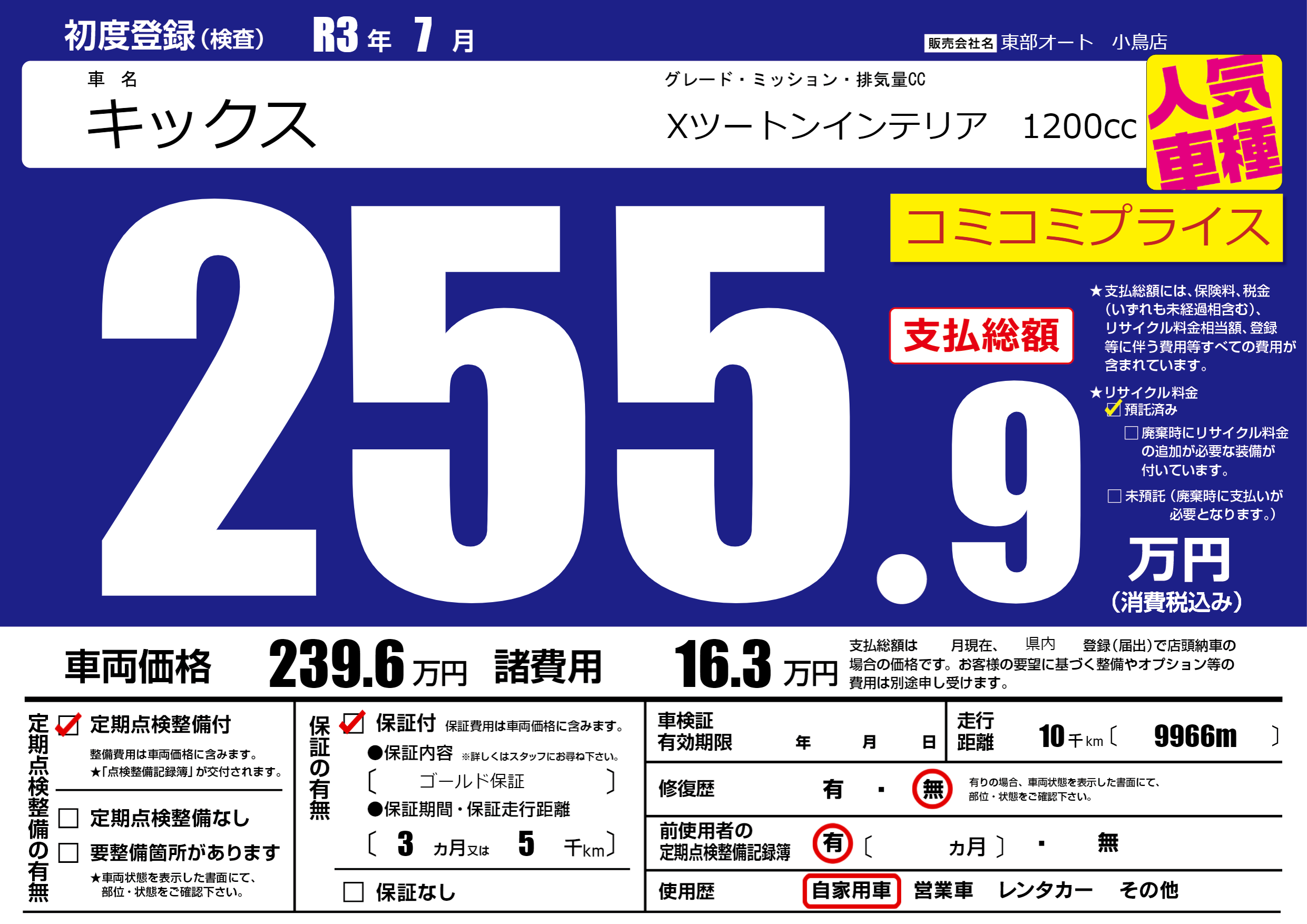 保証付き 保証内容( ゴールド保証) 3ヶ月または5千km |