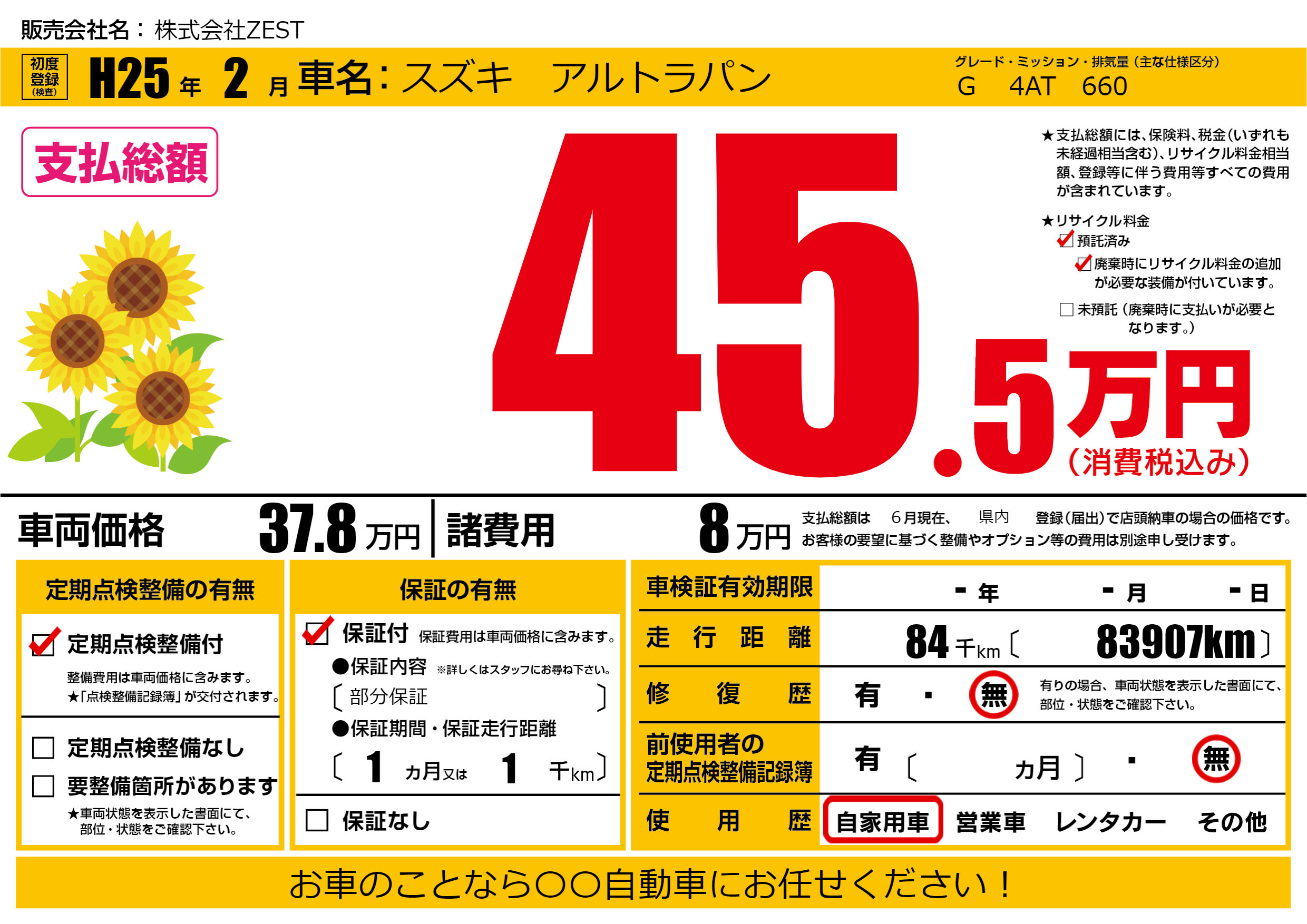 | 車名 | スズキ アルトラパン | グレード ミッション 排気量 |