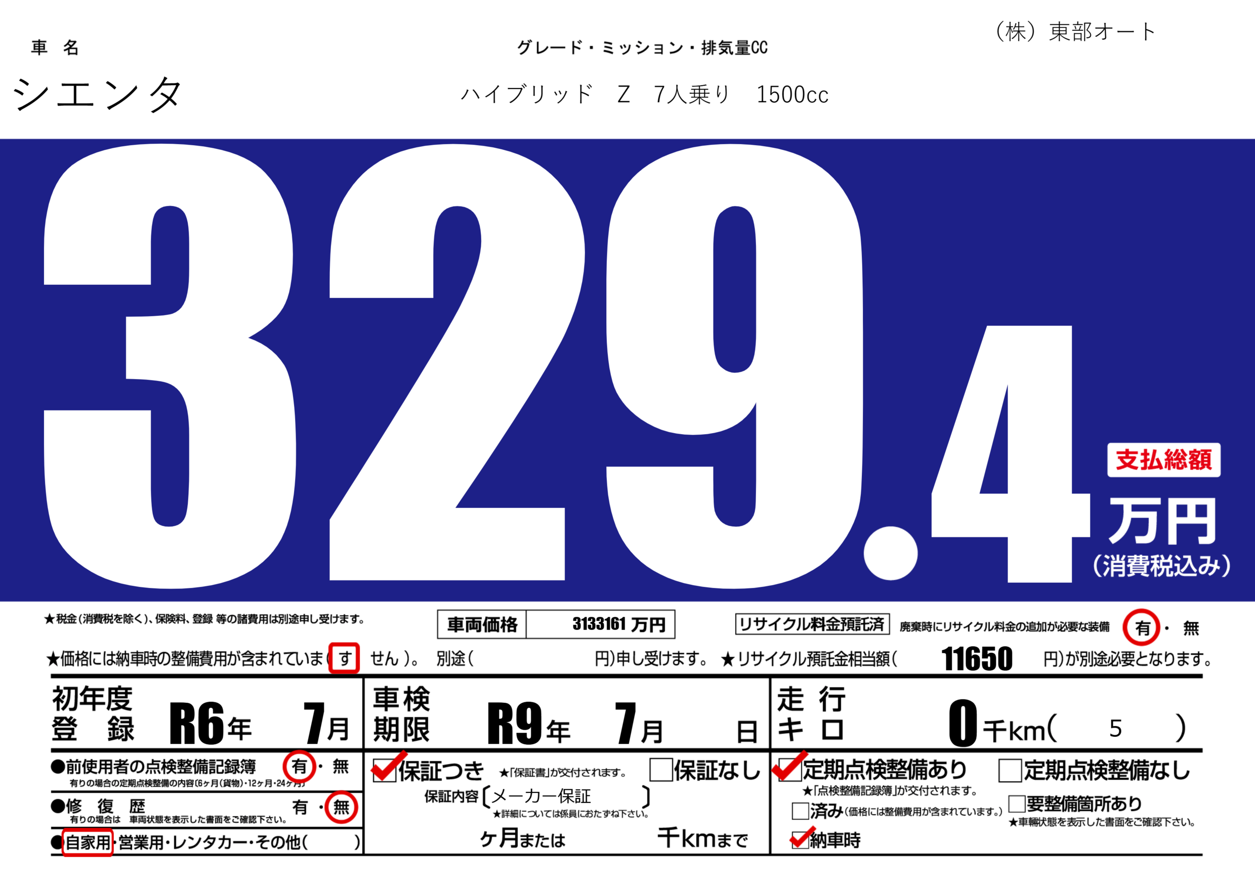 | 車検制限 | R9年 7月 - 日 | ||