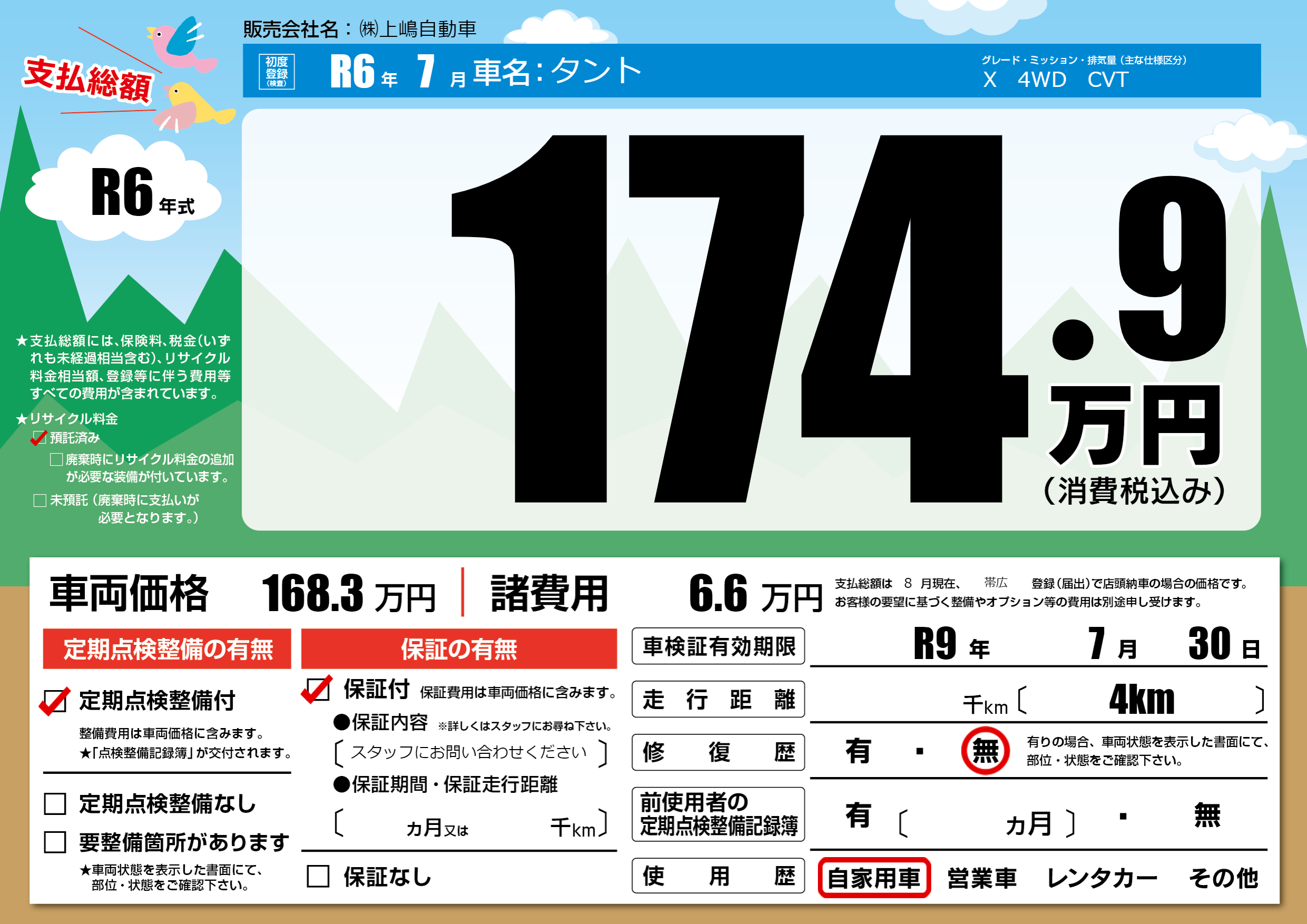 | 走行キロ | - | 初年度登録 | R6年7月 |