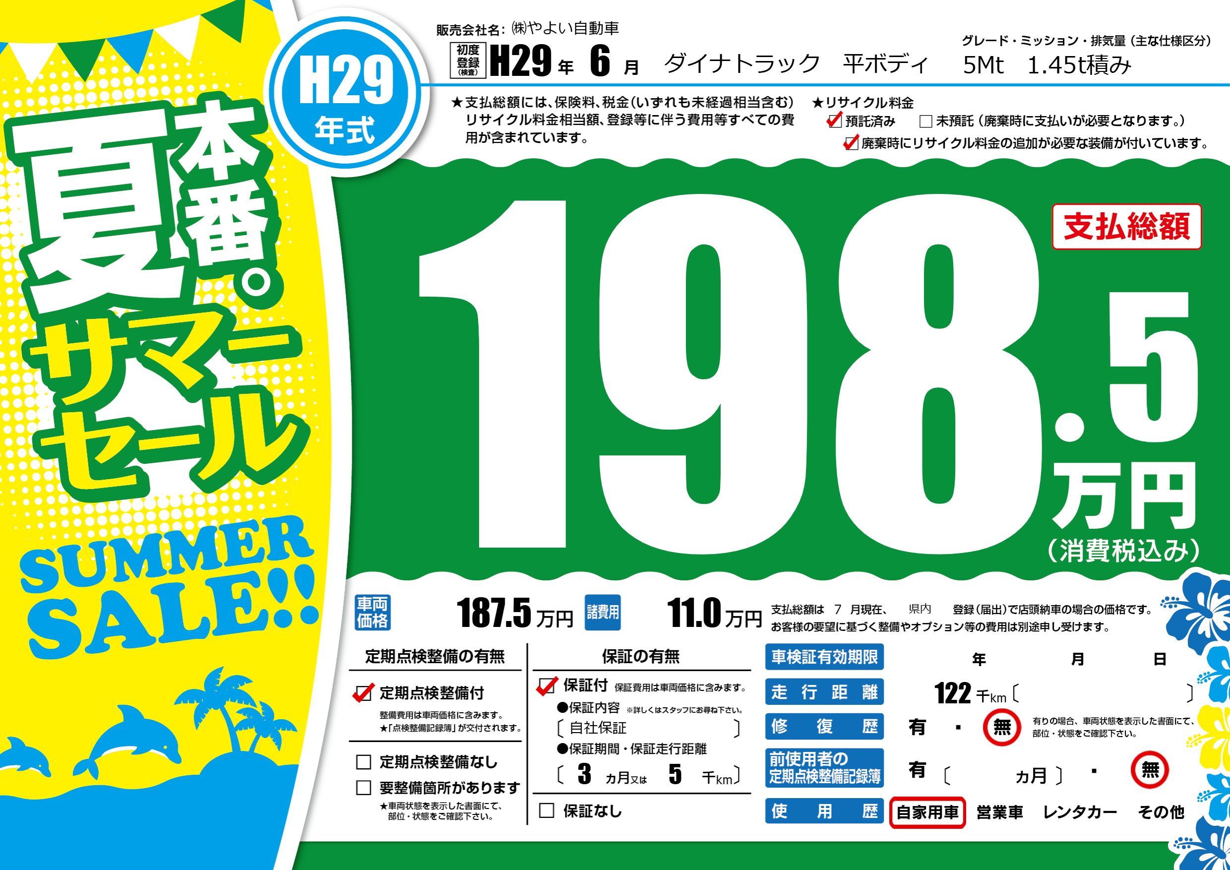 保証付き 保証内容(自社保証) 3ヶ月または(5)千kmまで |