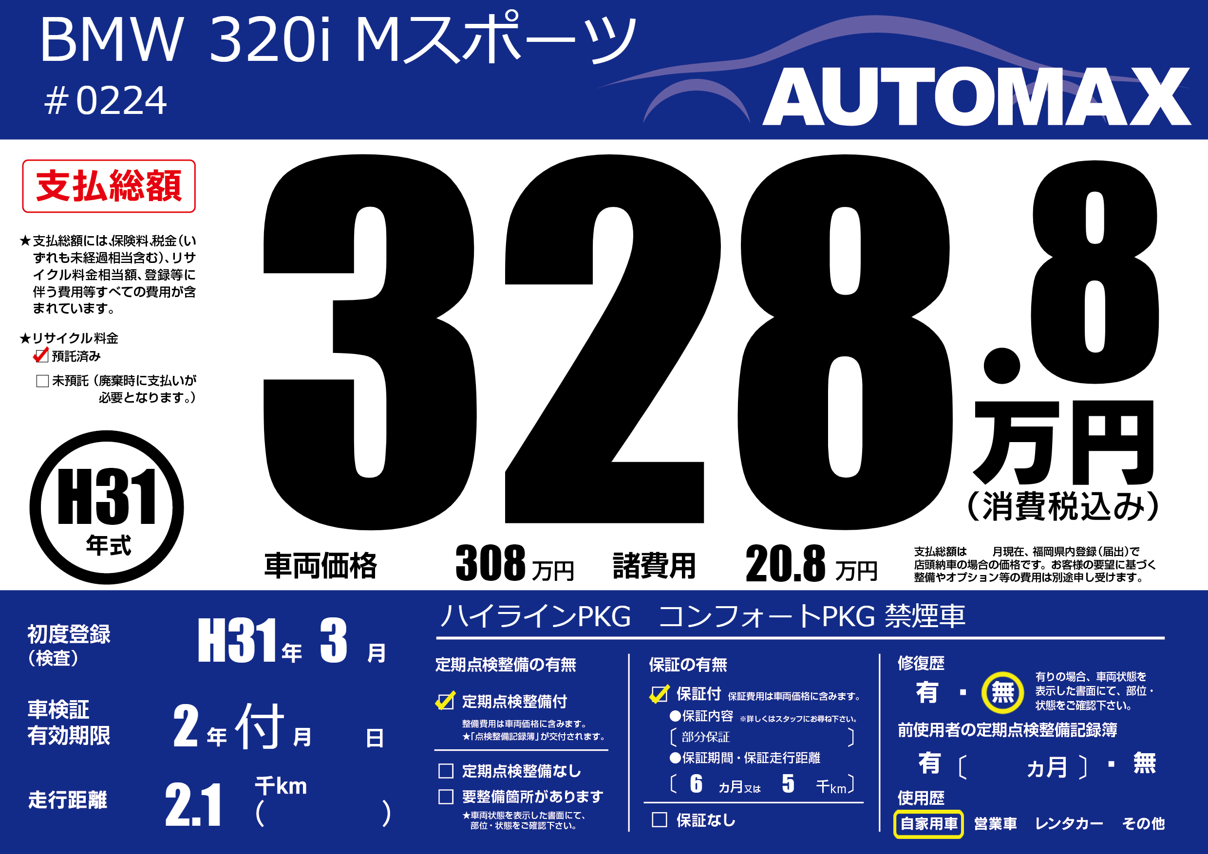 | 定期点検整備 | 定期点検整備あり | ||