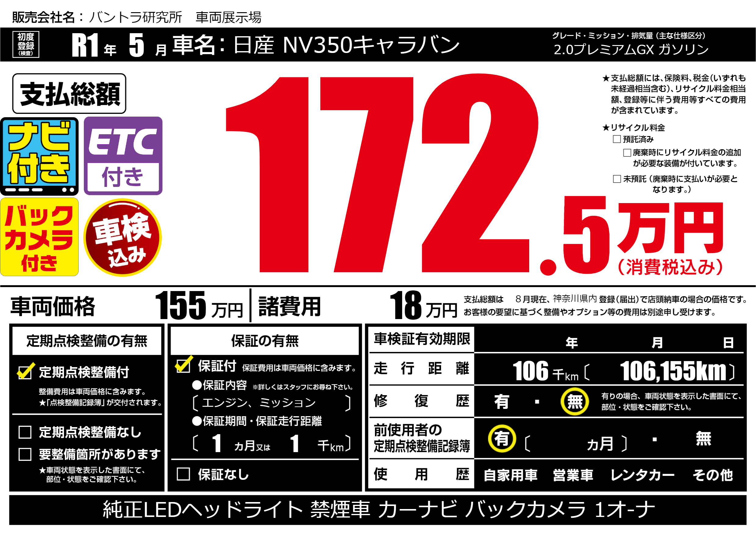 | 定期点検整備 | 定期点検整備あり | ||
