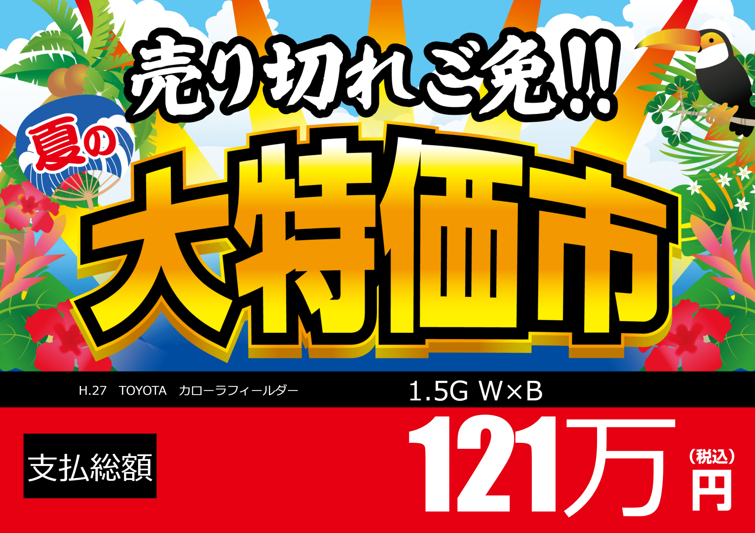 | 車名 | H.27 TOYOTA カローラフィールダー | グレード ミッション 排気量 |
