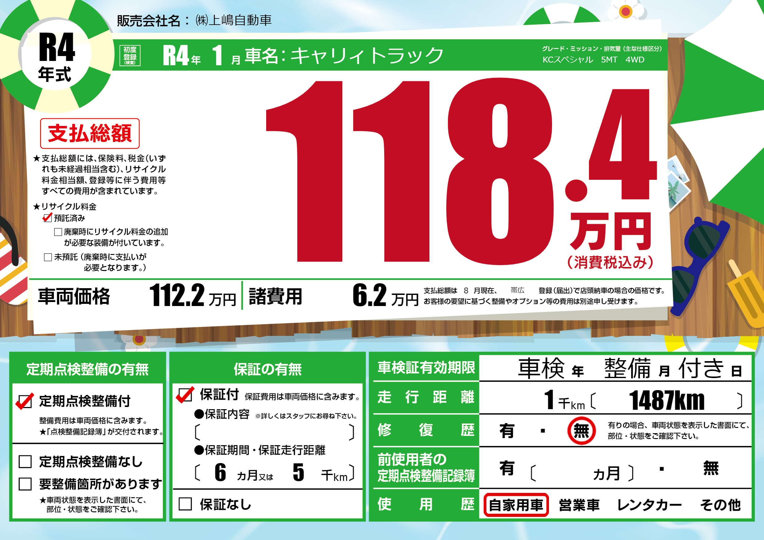 保証付き 保証内容(---) 6ヶ月または(5)千kmまで |