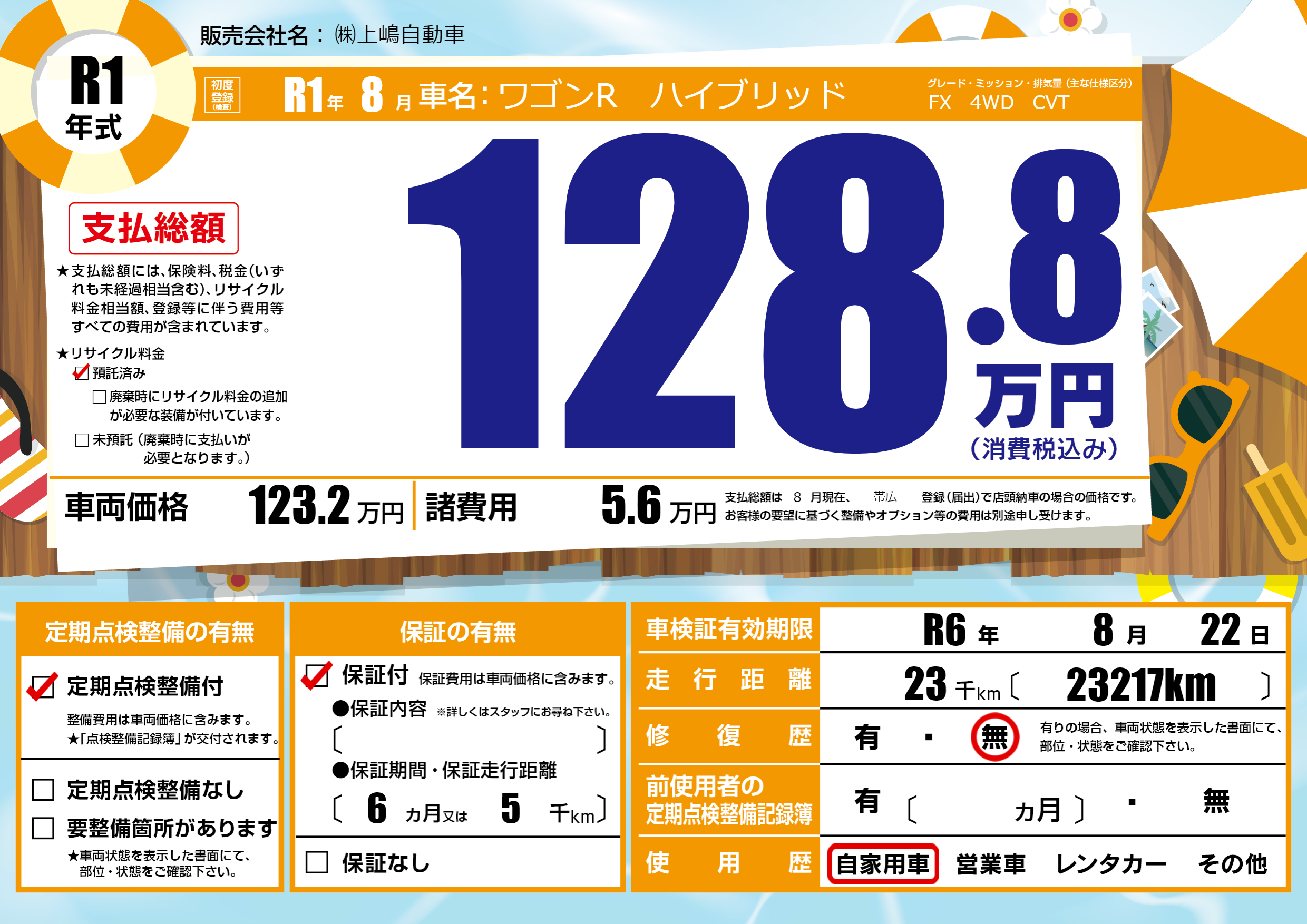 | 走行キロ | 2.3万km | 初年度登録 | R1年8月 |