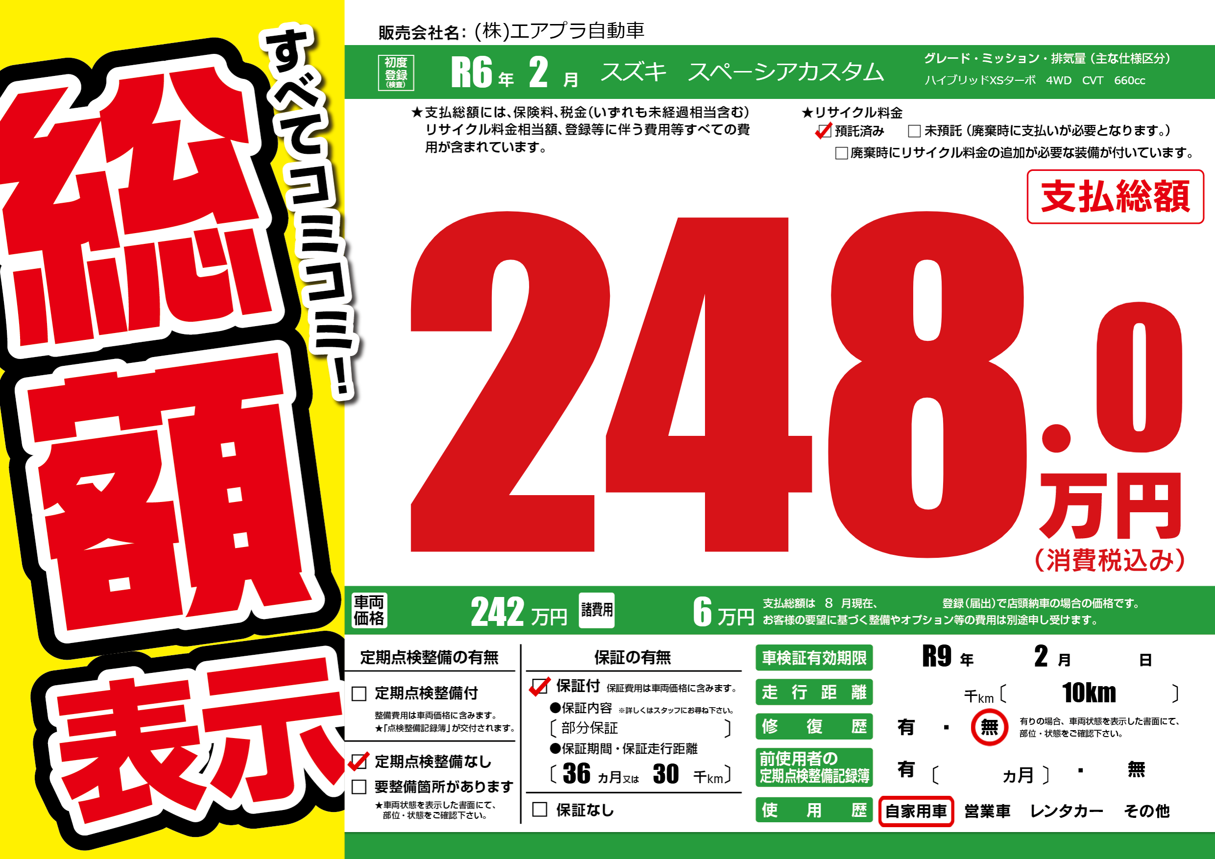 | 車名 | スズキ スペーシアカスタム | グレード ミッション 排気量 |