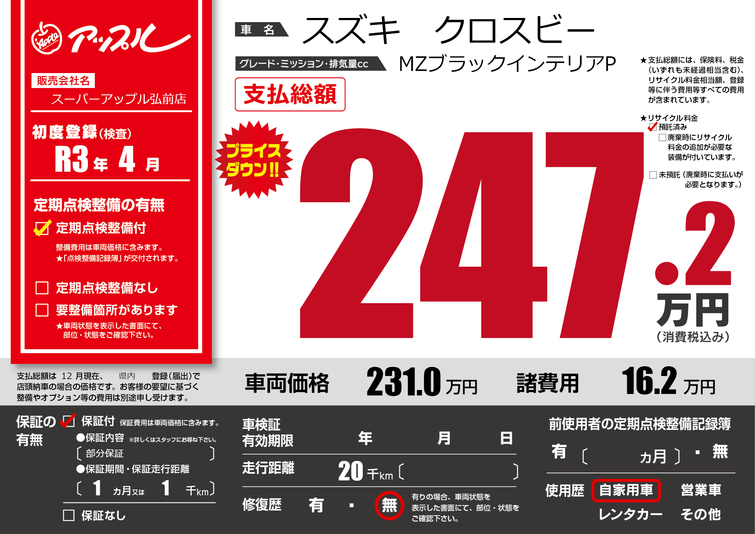 | 走行キロ | 2万km | 初年度登録 | R3年4月 |