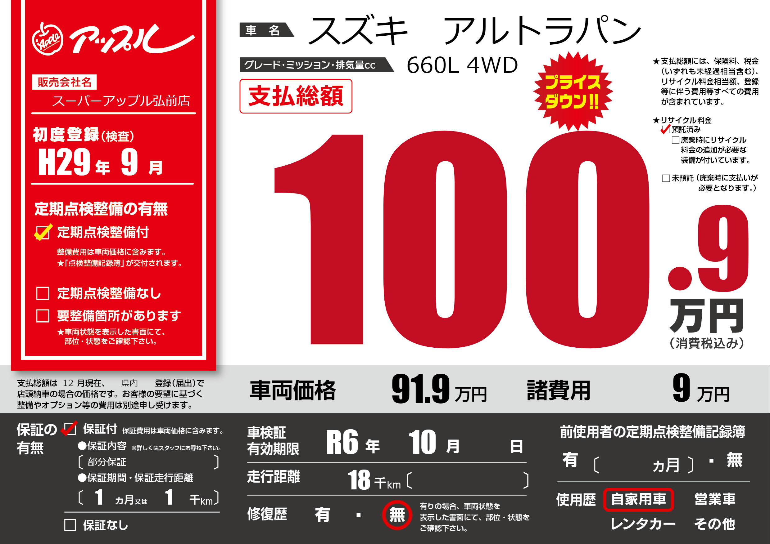 | 走行キロ | 1.8万km | 初年度登録 | H29年9月 |