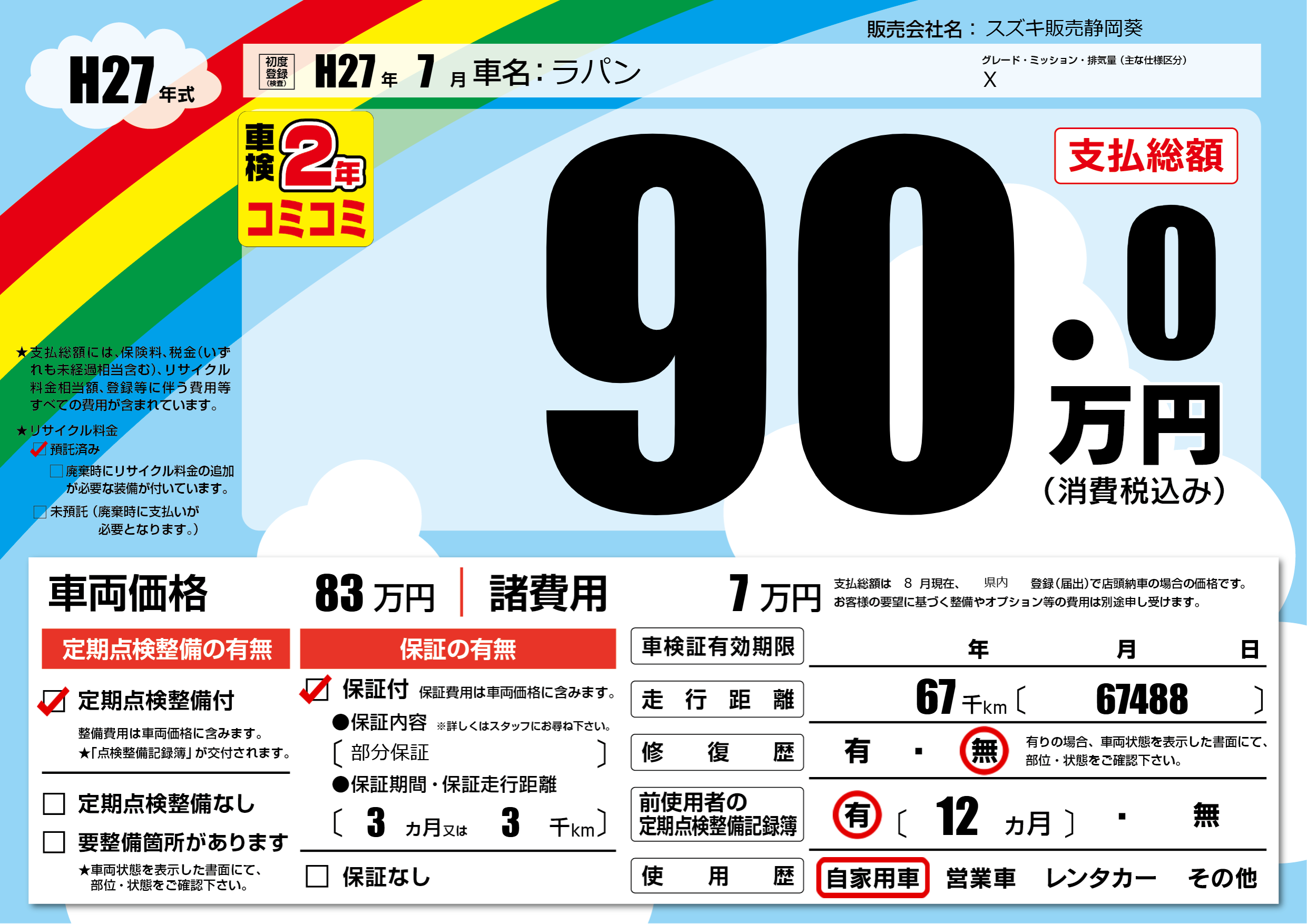 | 車名 | ラパン | グレード ミッション 排気量 |