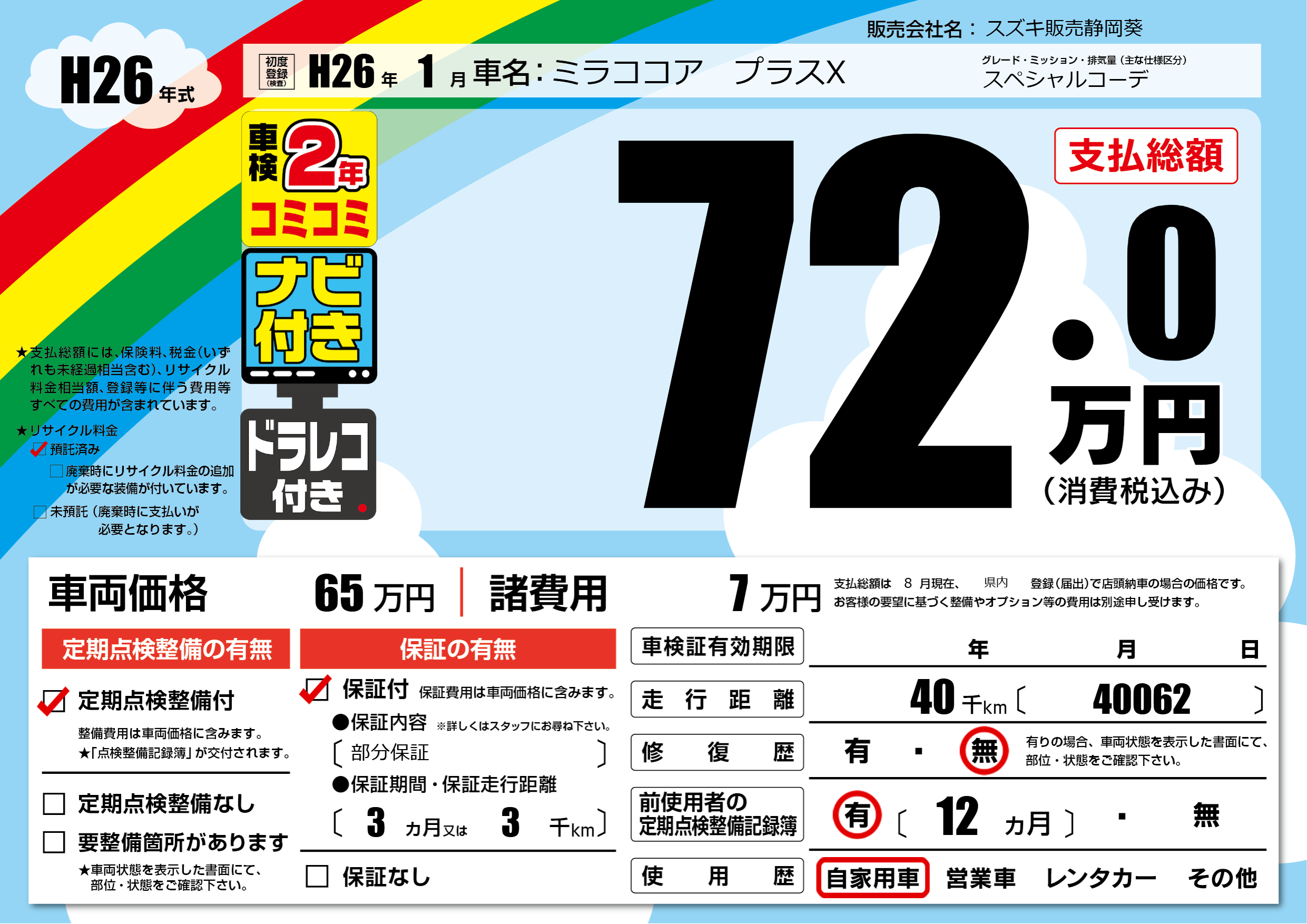 | 初年度登録 | H26年1月 | ||