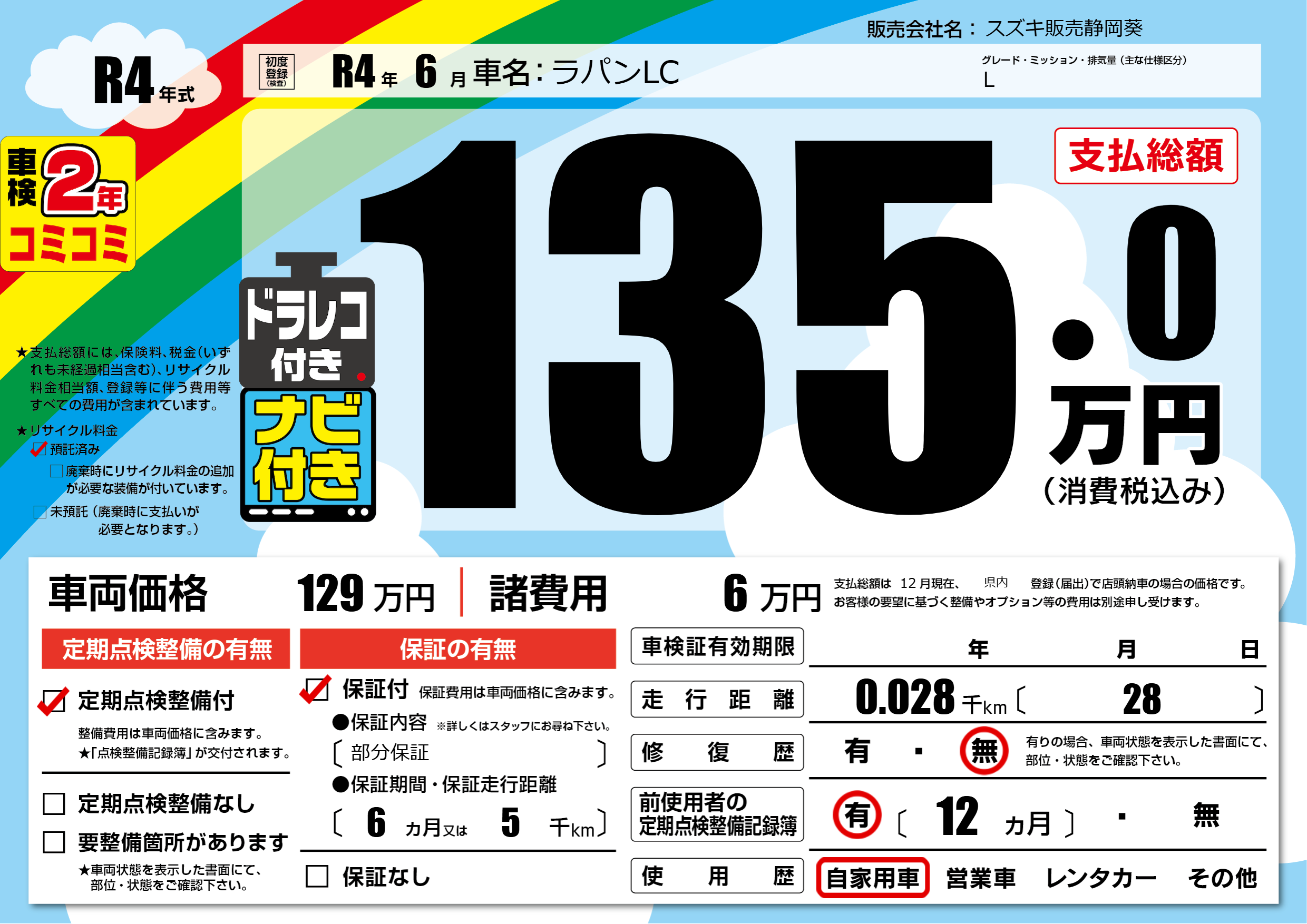 | 車名 | ラパンLC | グレード ミッション 排気量 |