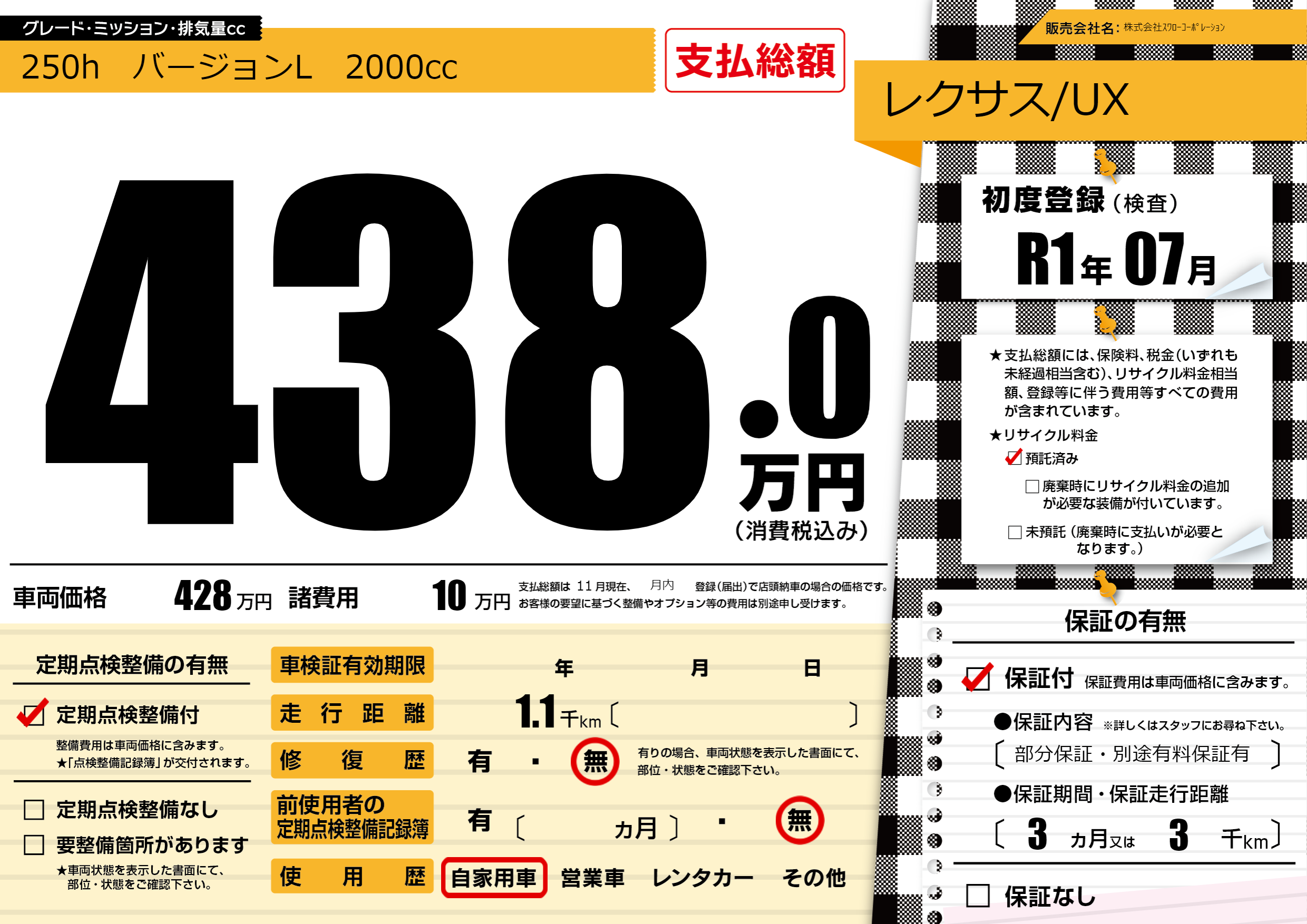 | 定期点検整備 | 定期点検整備あり | ||