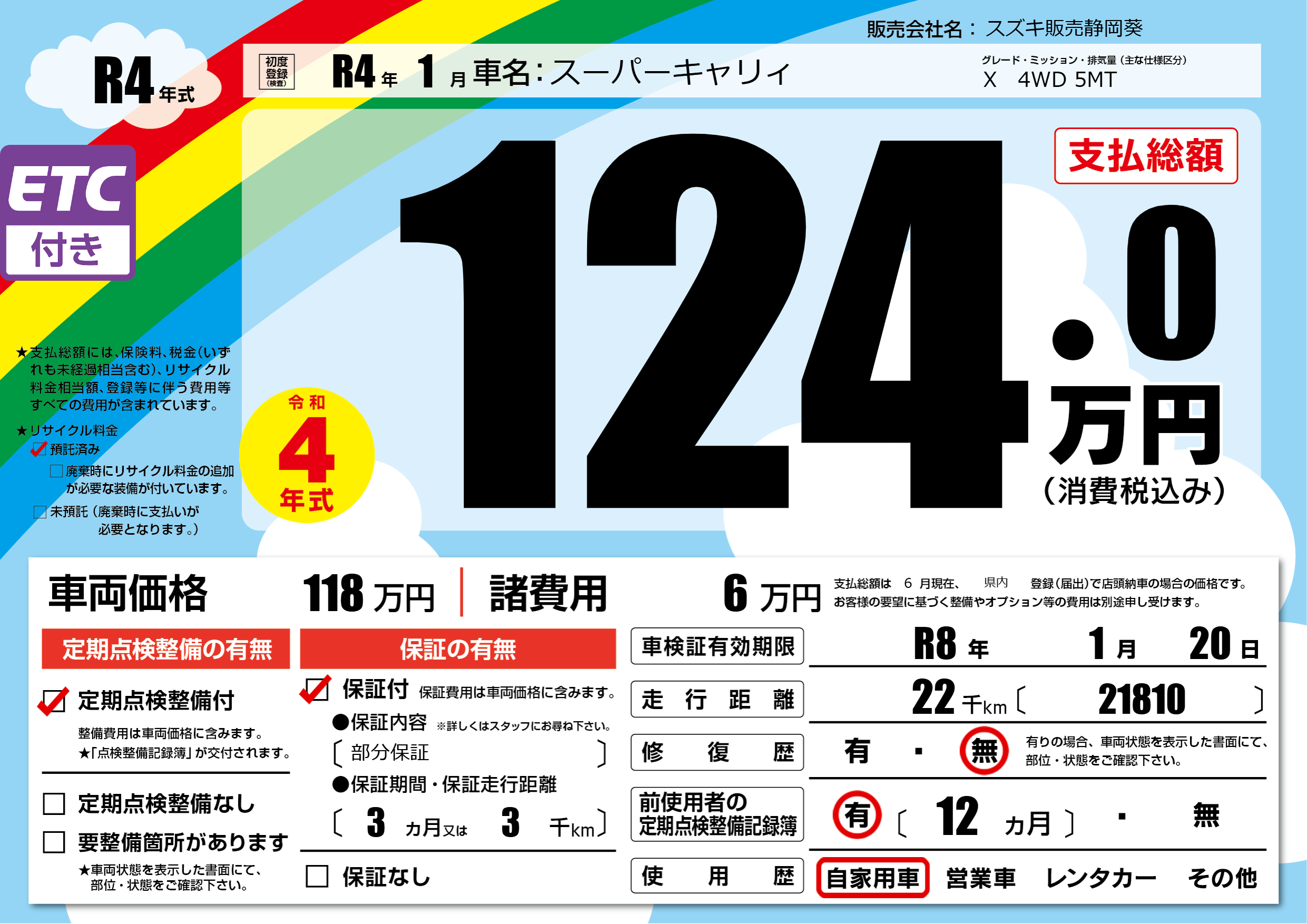| 車名 | スーパーキャリィ | グレード ミッション 排気量 |