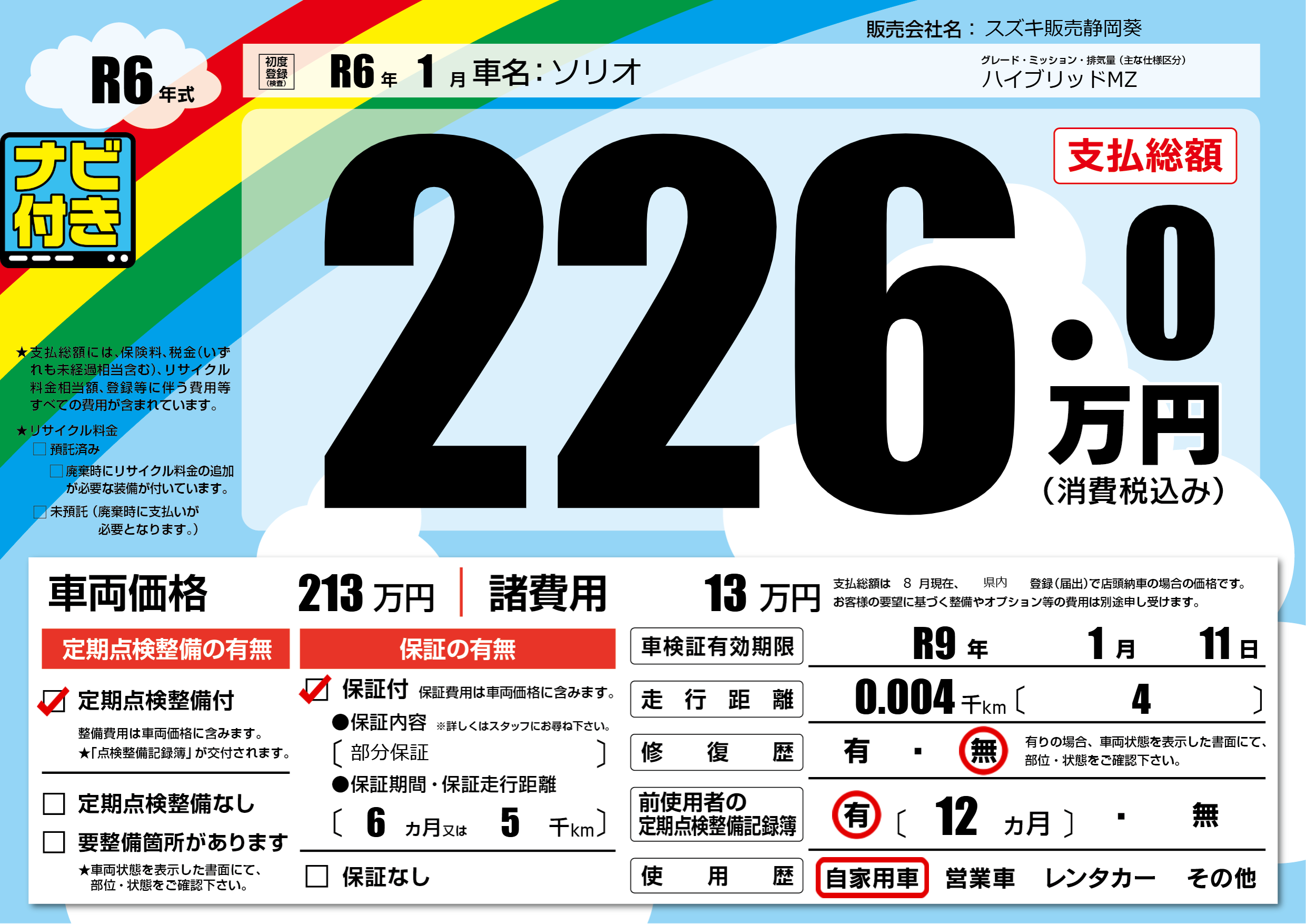 | 車名 | ソリオ | グレード ミッション 排気量 |