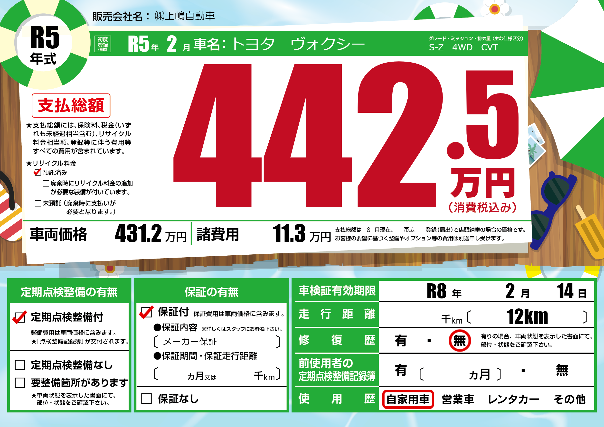 | 走行キロ | - | 初年度登録 | R5年2月 |