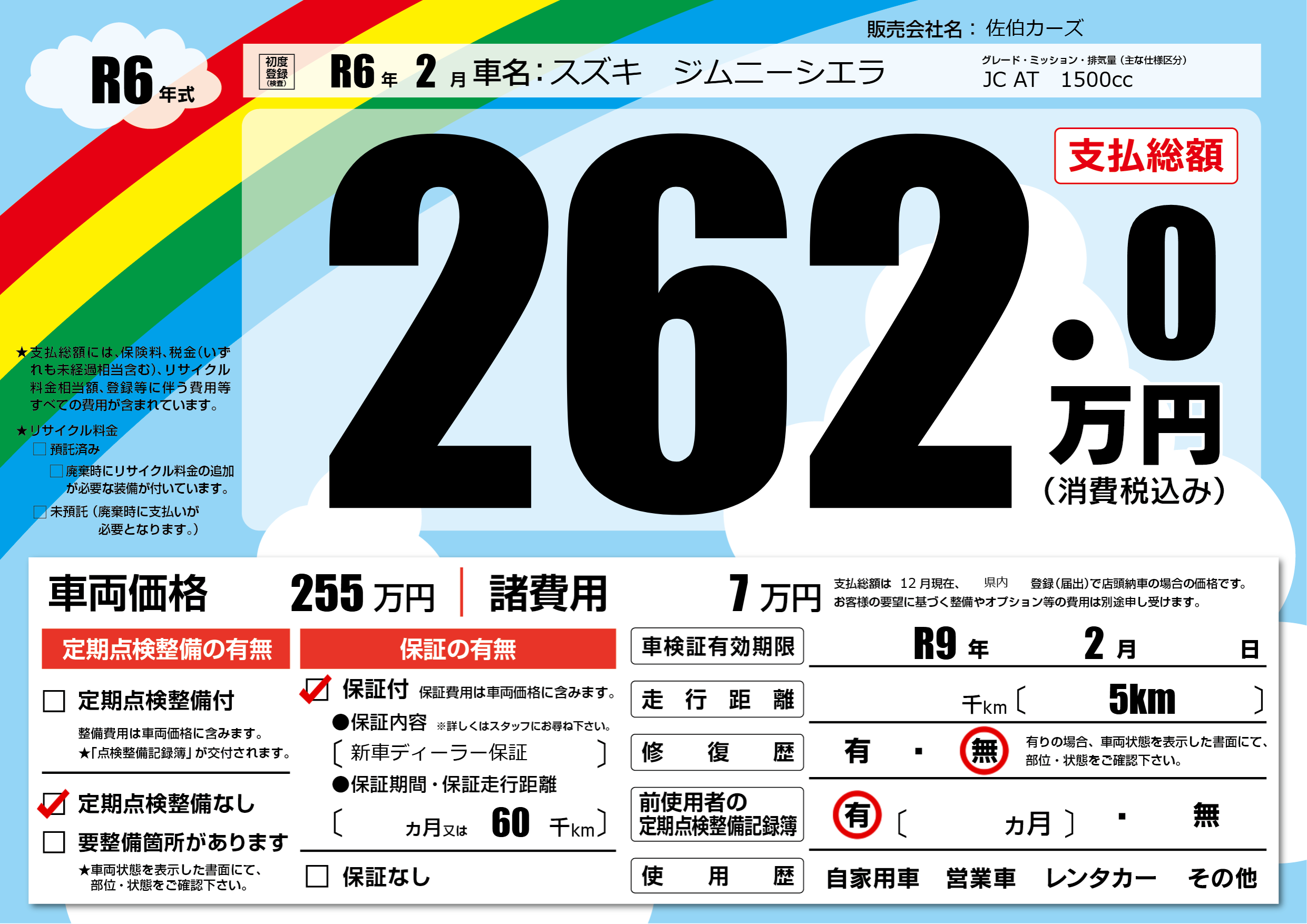 なし | 車検制限 | R9年2月---月 |