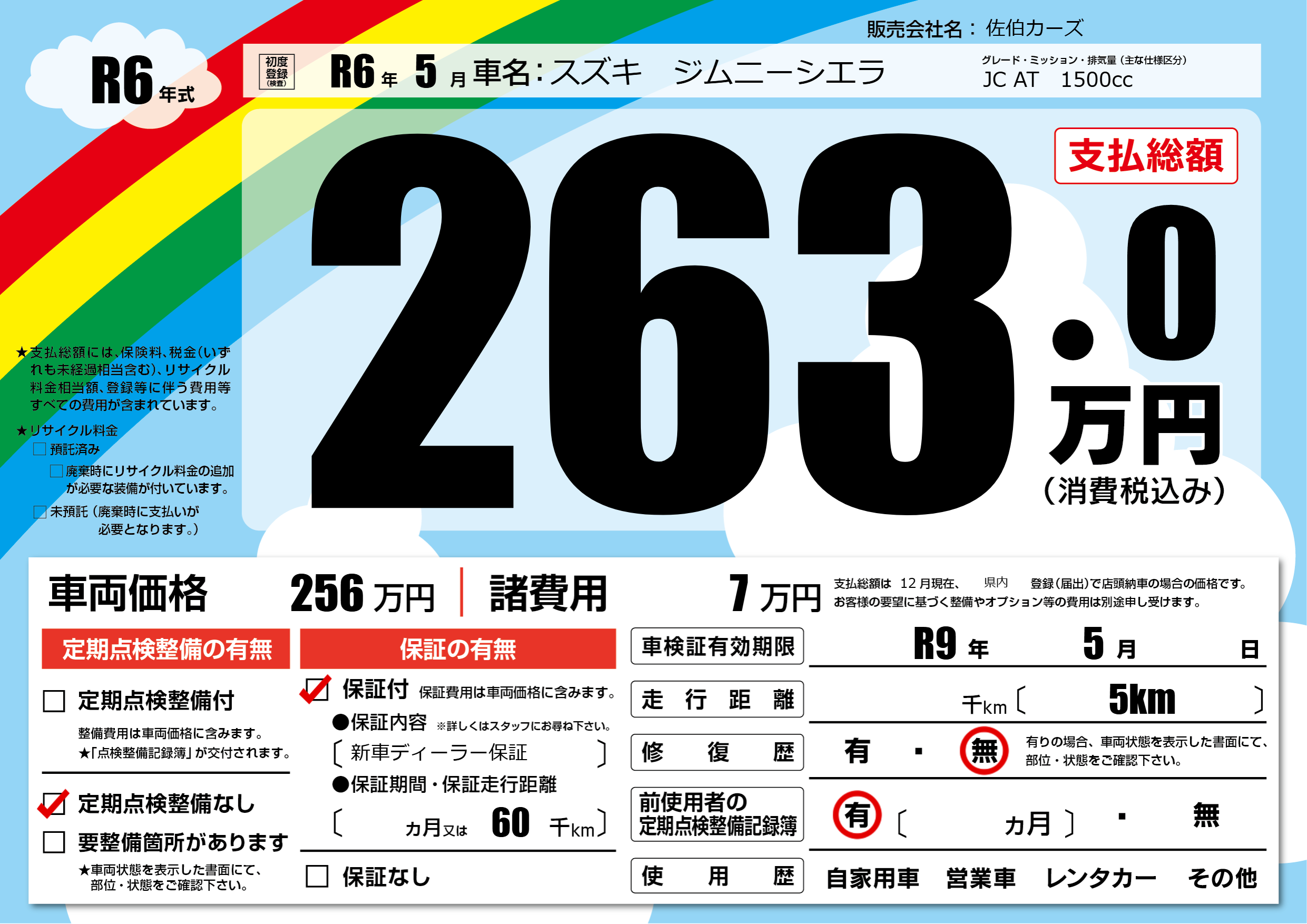 | 車名 | スズキ ジムニーシエラ | グレード ミッション 排気量 |