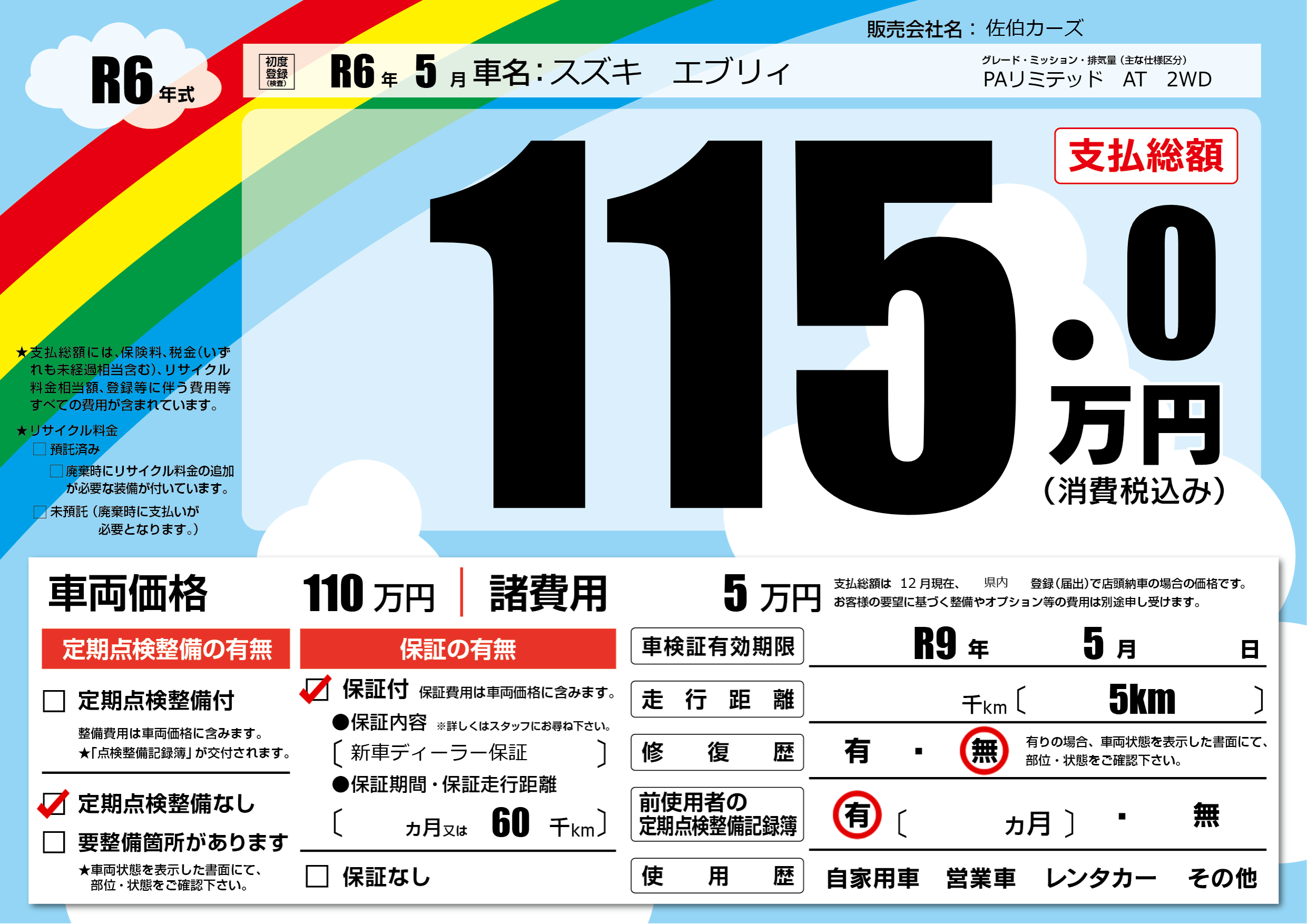 | 車名 | スズキ エブリィ | グレード ミッション 排気量 |