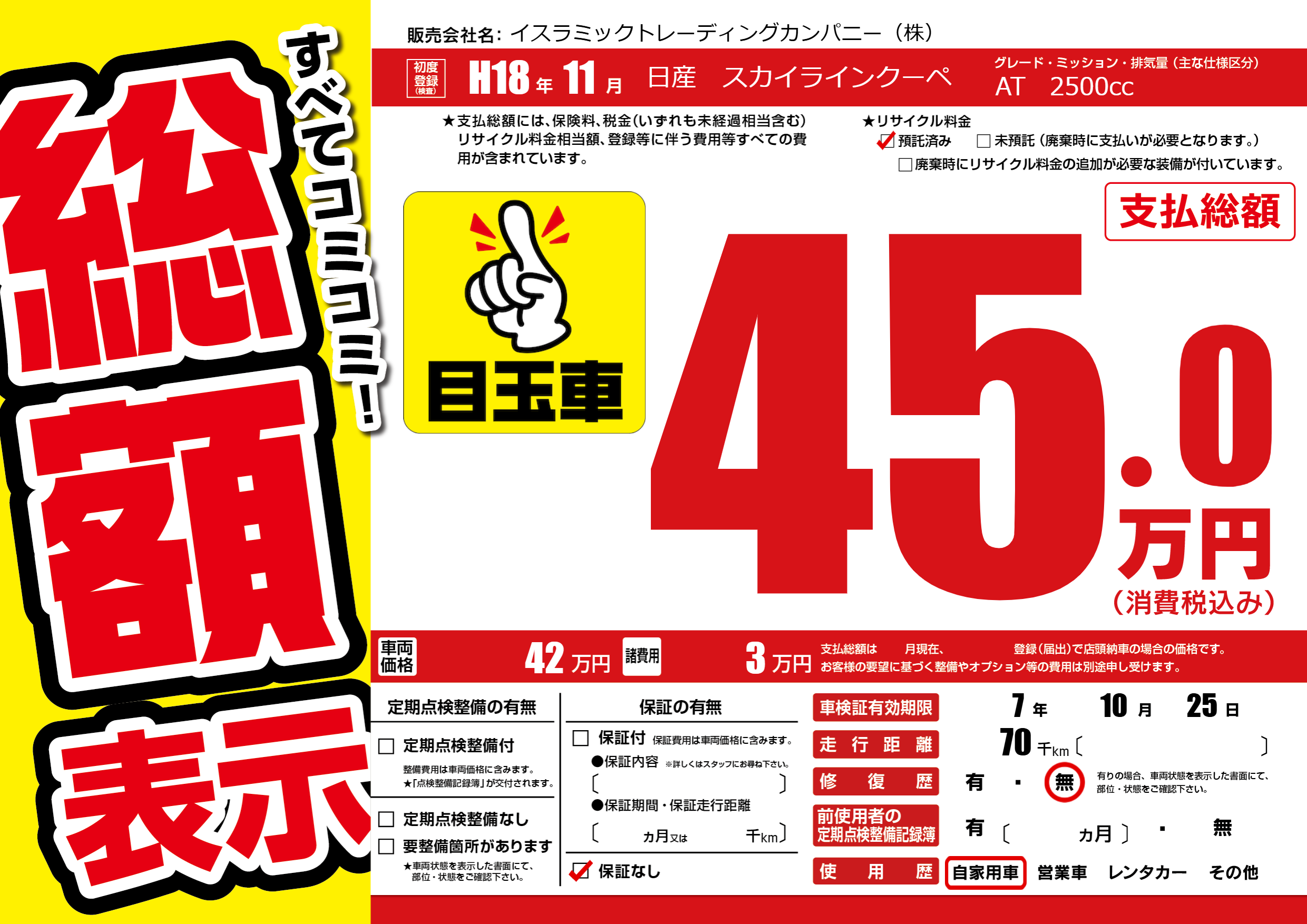 | 車検制限 | 7年 10月 25日 | ||
