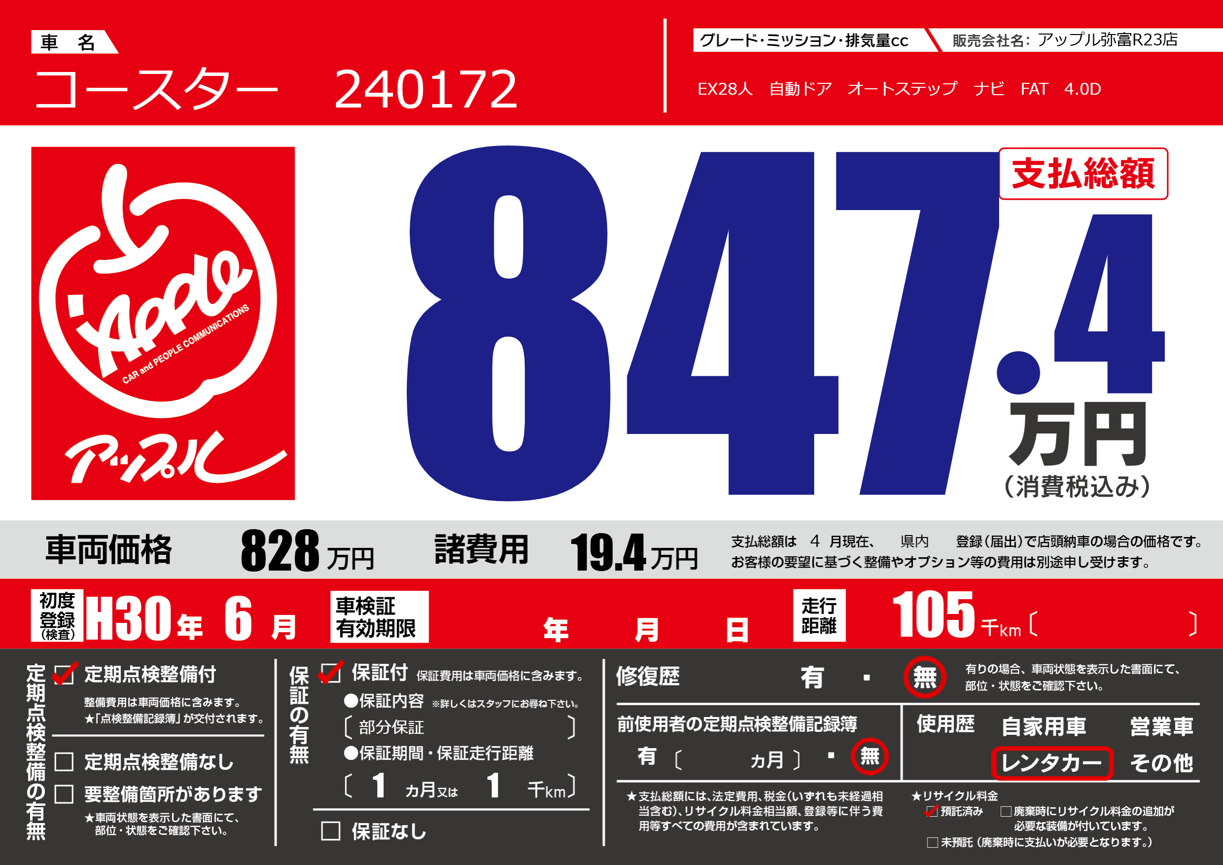 | 車名 | コースター 240172 | グレード ミッション 排気量 |
